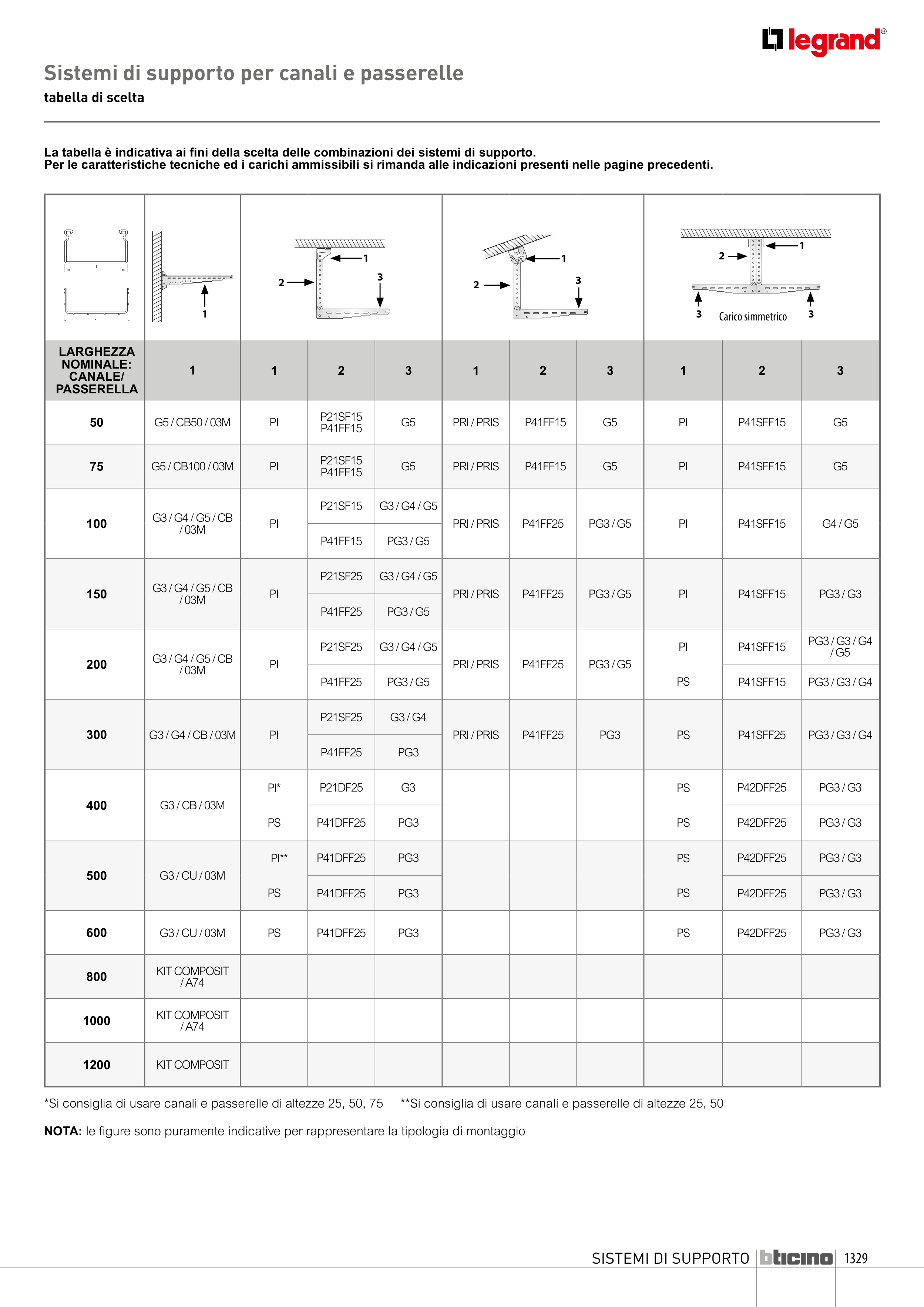 La tabella è indicativa ai fini della scelta delle combinazioni dei sistemi di supporto.