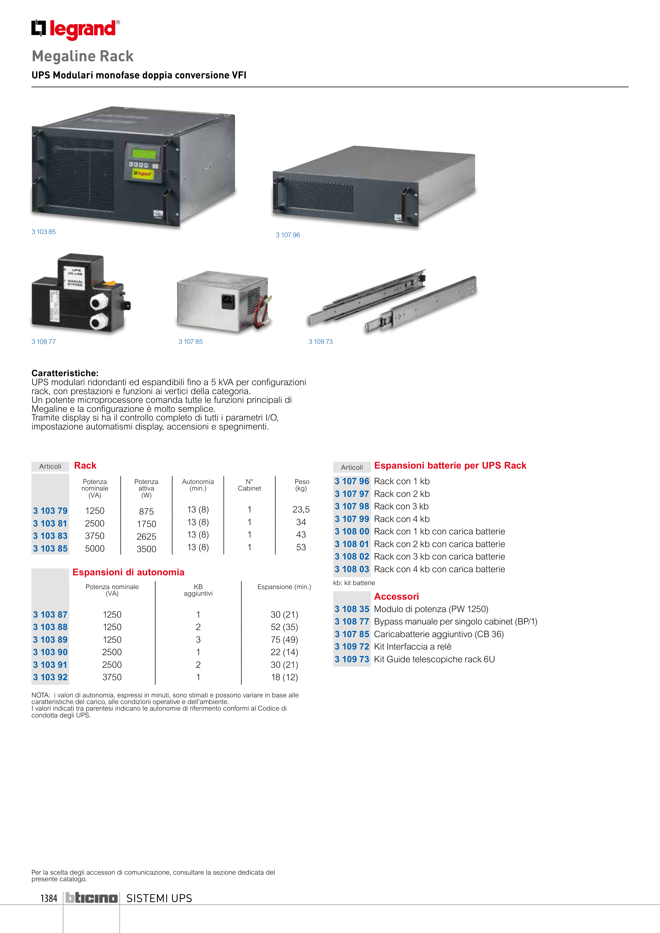 3 108 00 Rack con 1 kb con carica batterie