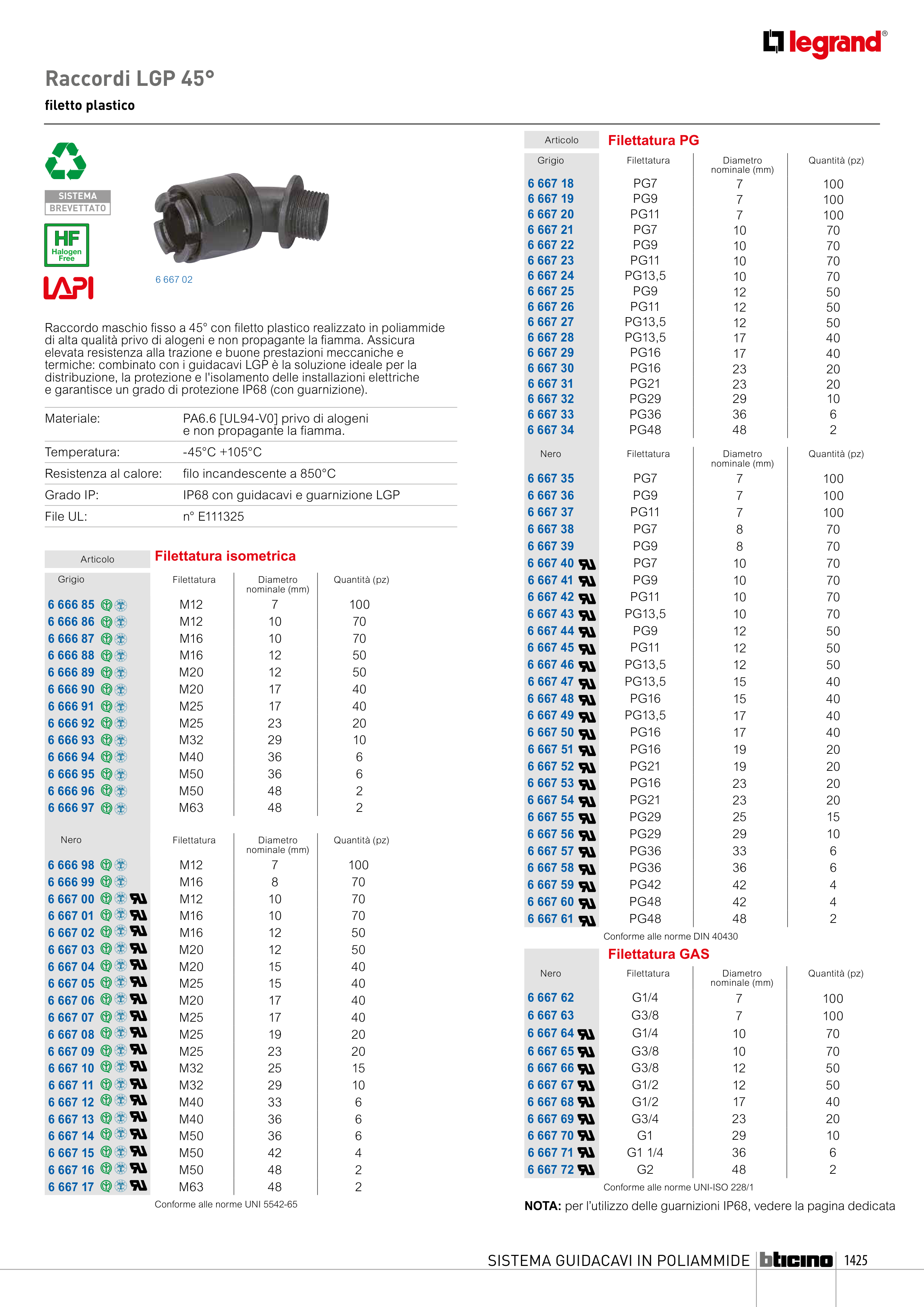 IP68 con guidacavi e guarnizione LGP