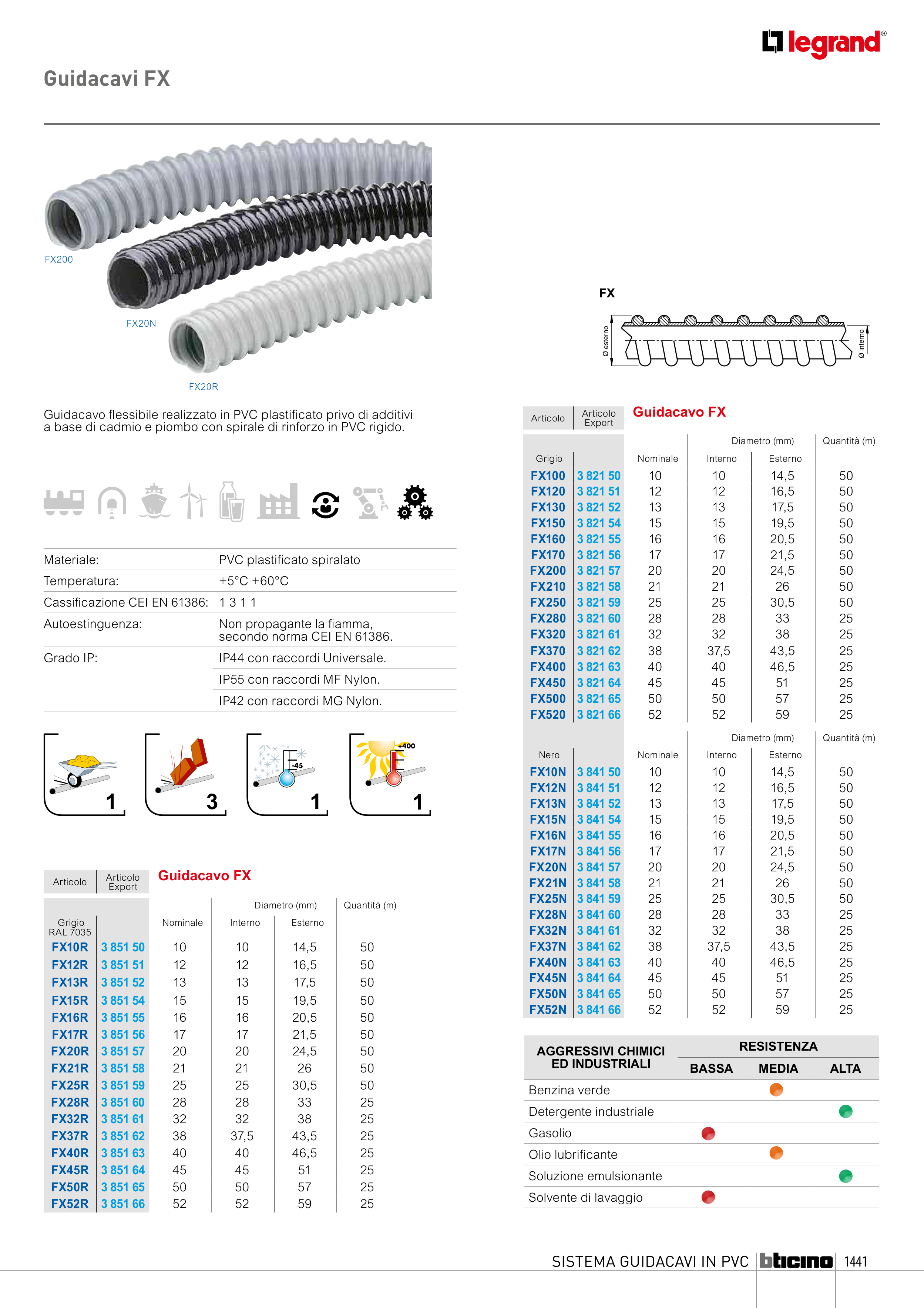 a base di cadmio e piombo con spirale di rinforzo in PVC rigido.