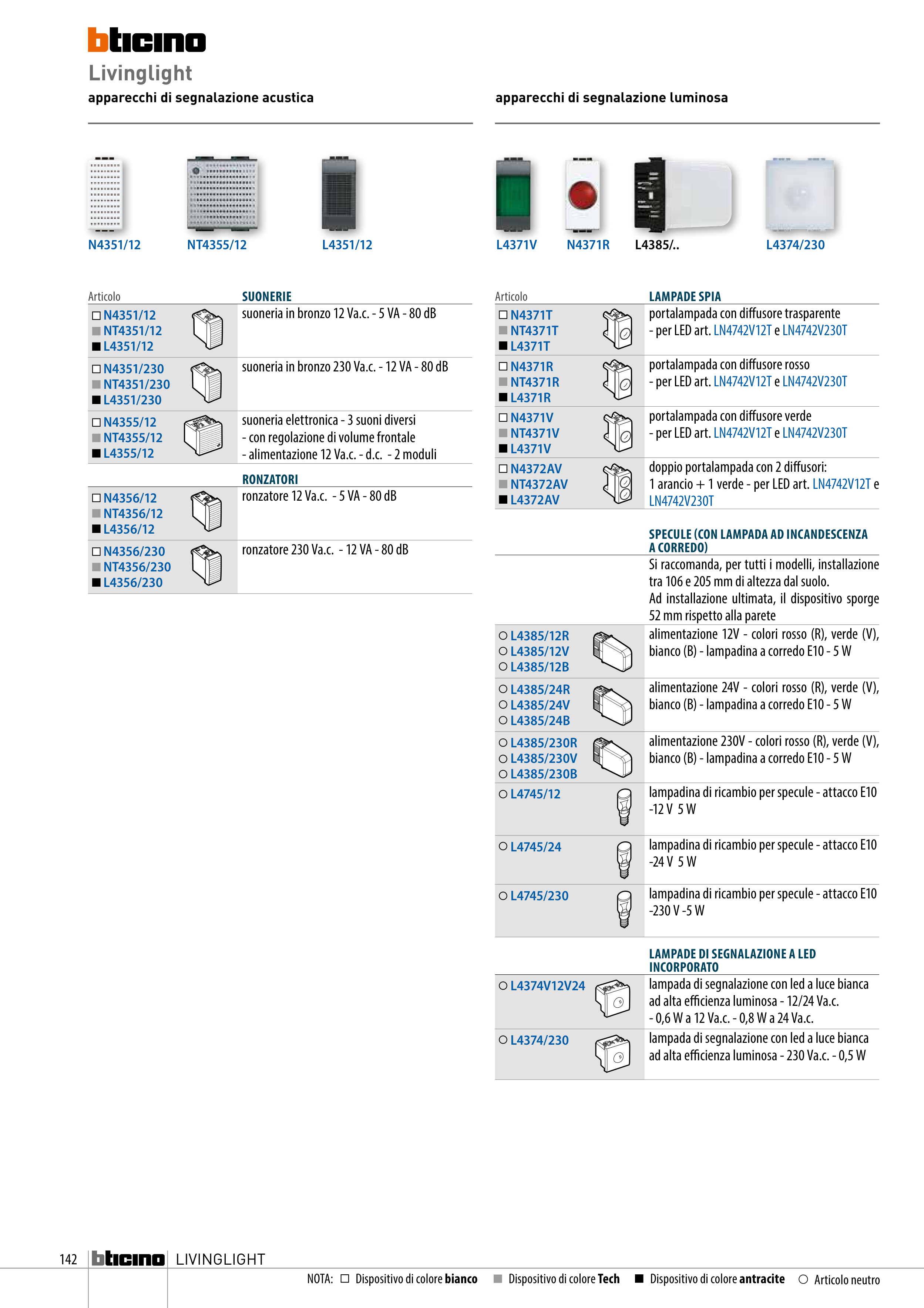 - per LED art. LN4742V12T e LN4742V230T