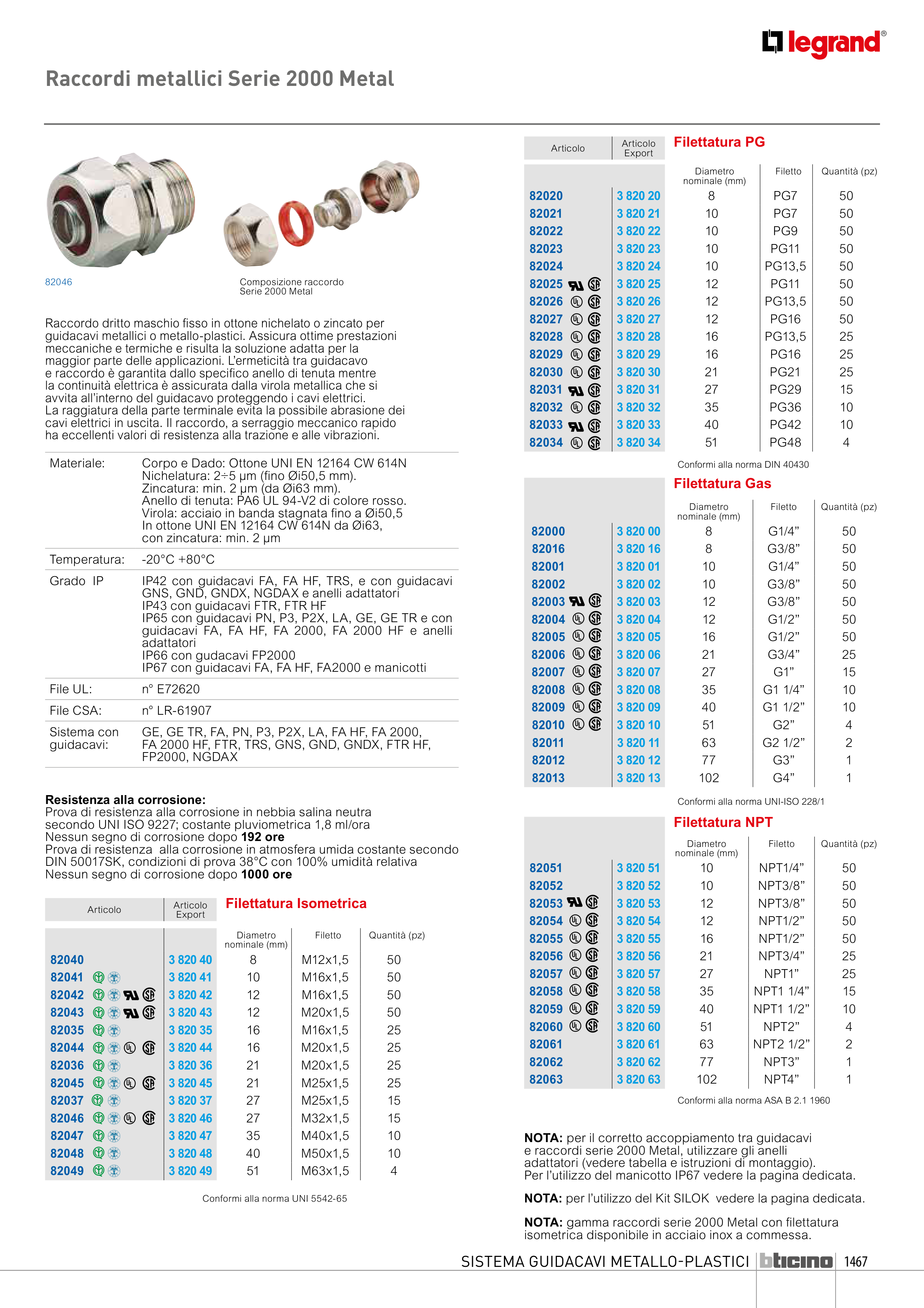 NOTA: gamma raccordi serie 2000 Metal con filettatura