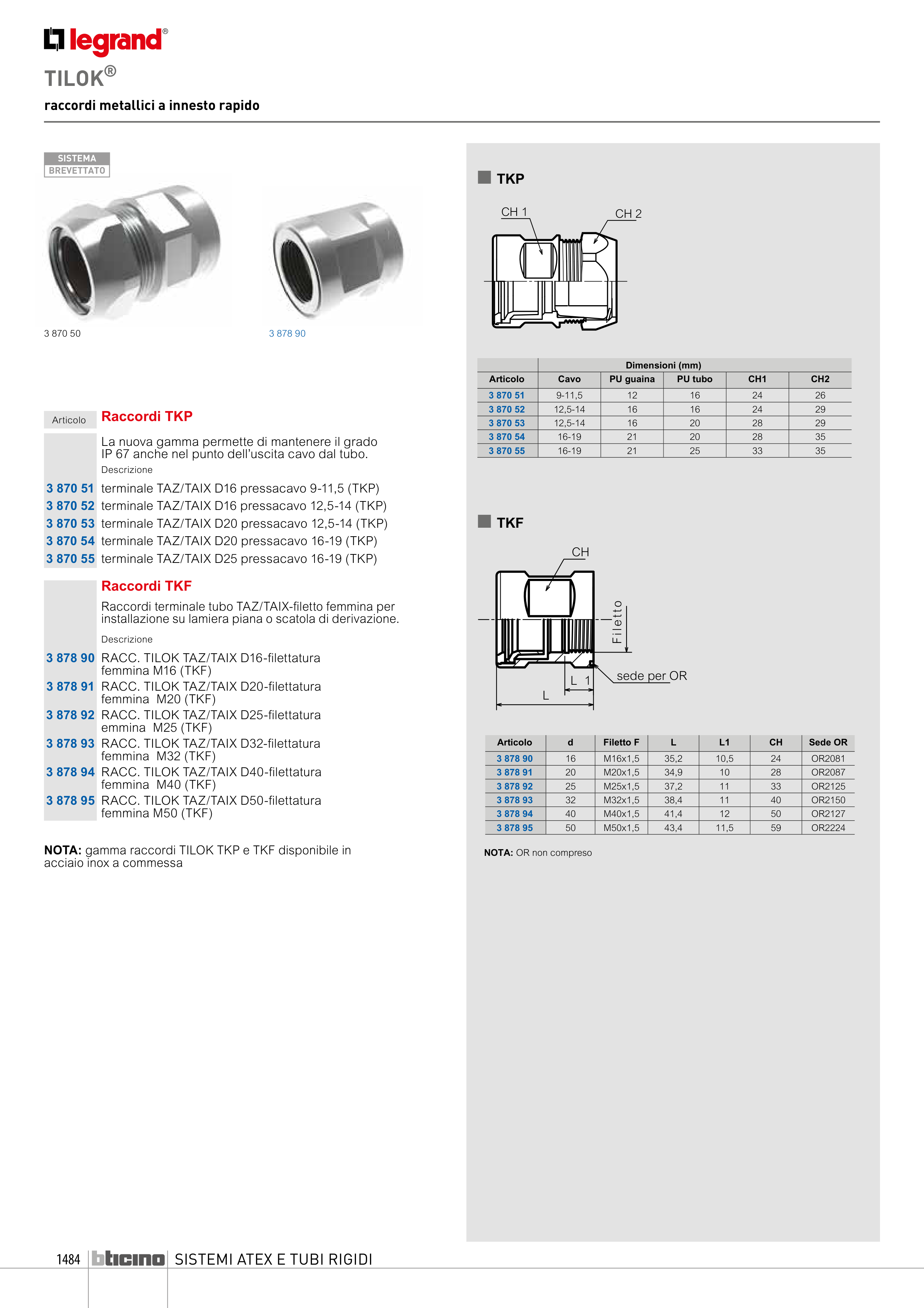 NOTA: gamma raccordi TILOK TKP e TKF disponibile in