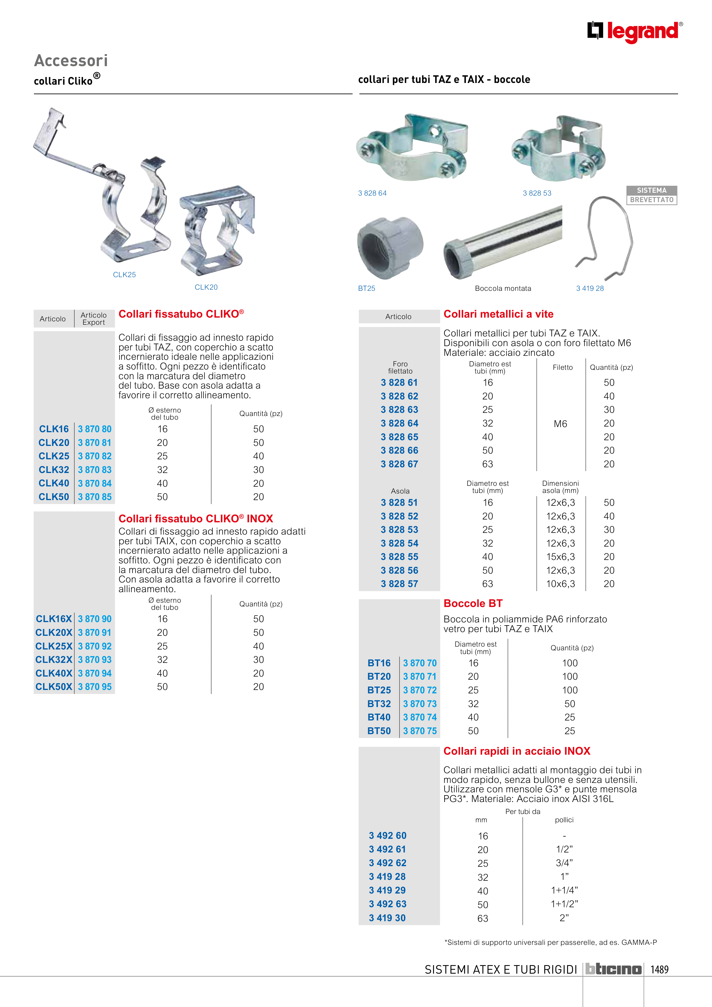 Collari metallici per tubi TAZ e TAIX.
