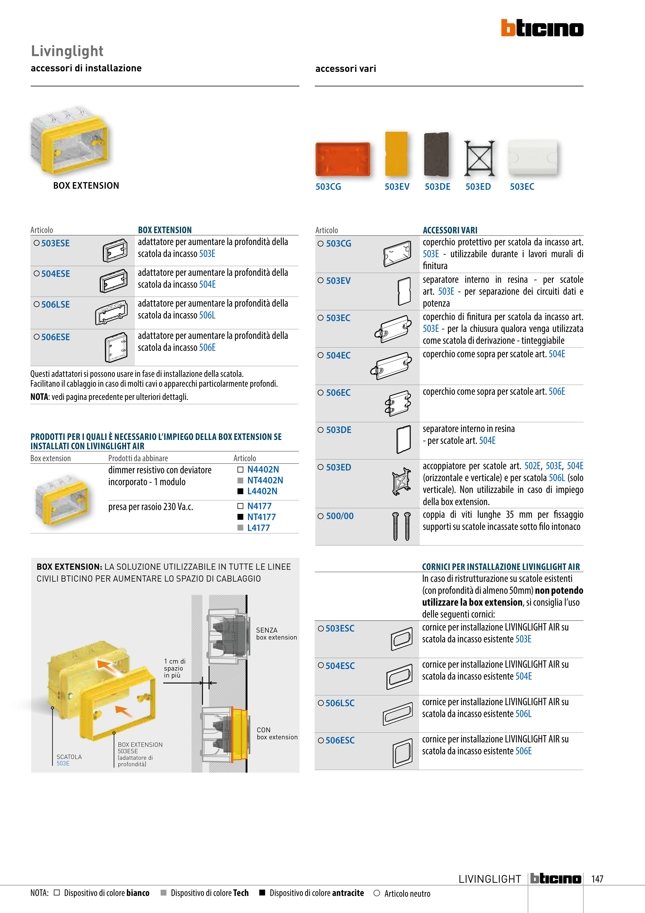 PRODOTTI PER I QUALI È NECESSARIO L’IMPIEGO DELLA BOX EXTENSION SE