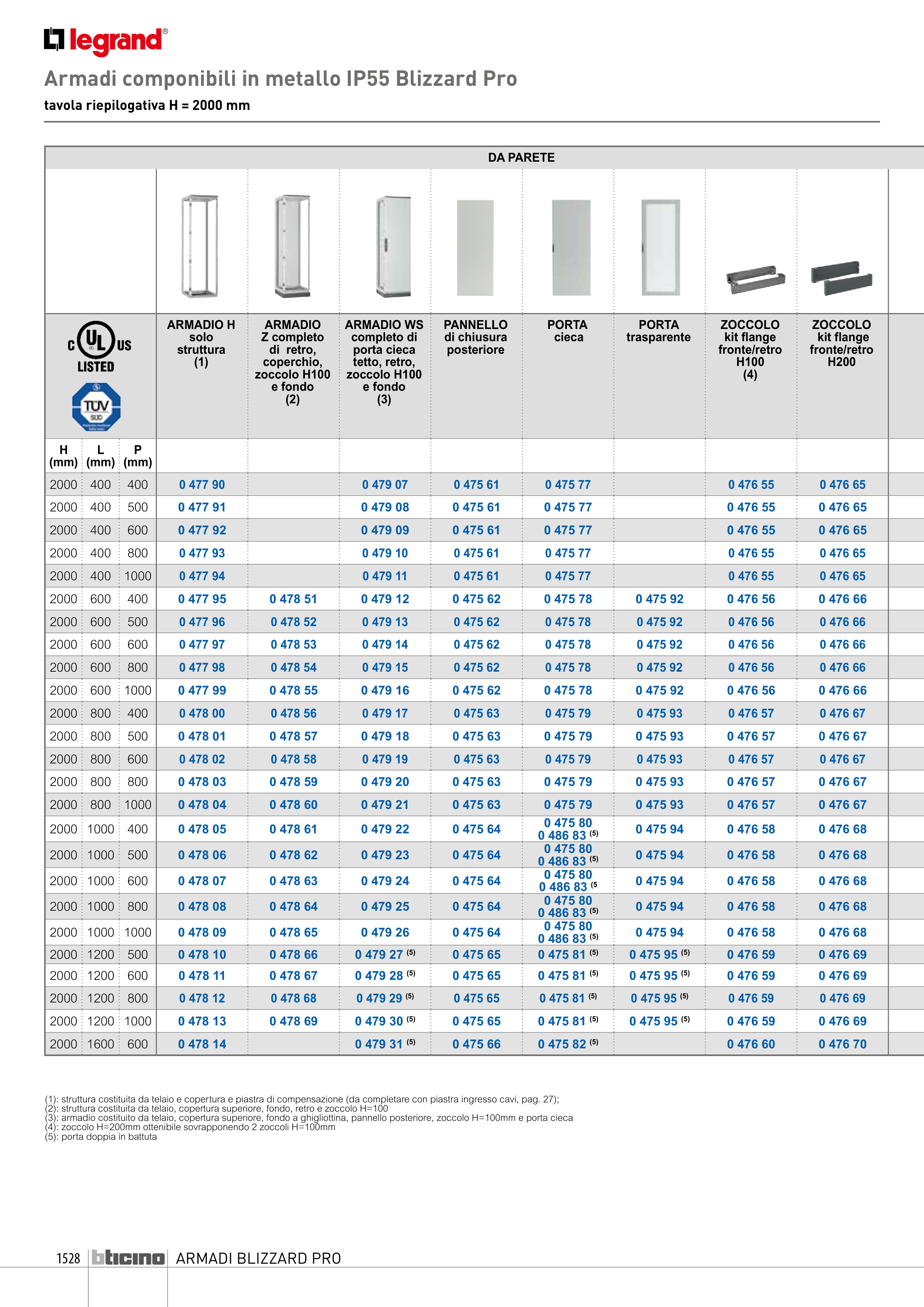 (4): zoccolo H=200mm ottenibile sovrapponendo 2 zoccoli H=100mm