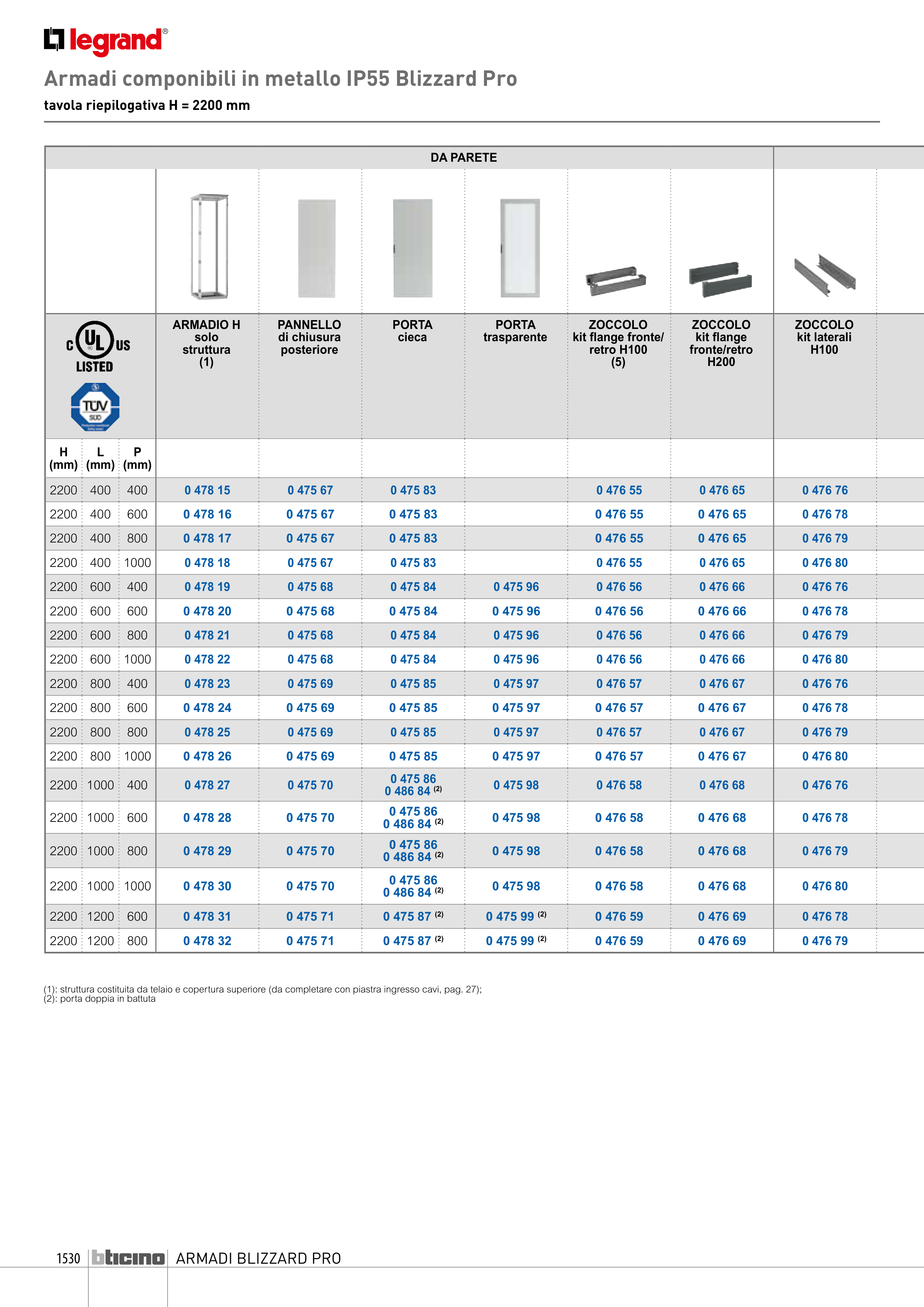 (1): struttura costituita da telaio e copertura superiore (da completare con piastra ingresso cavi, pag. 27);