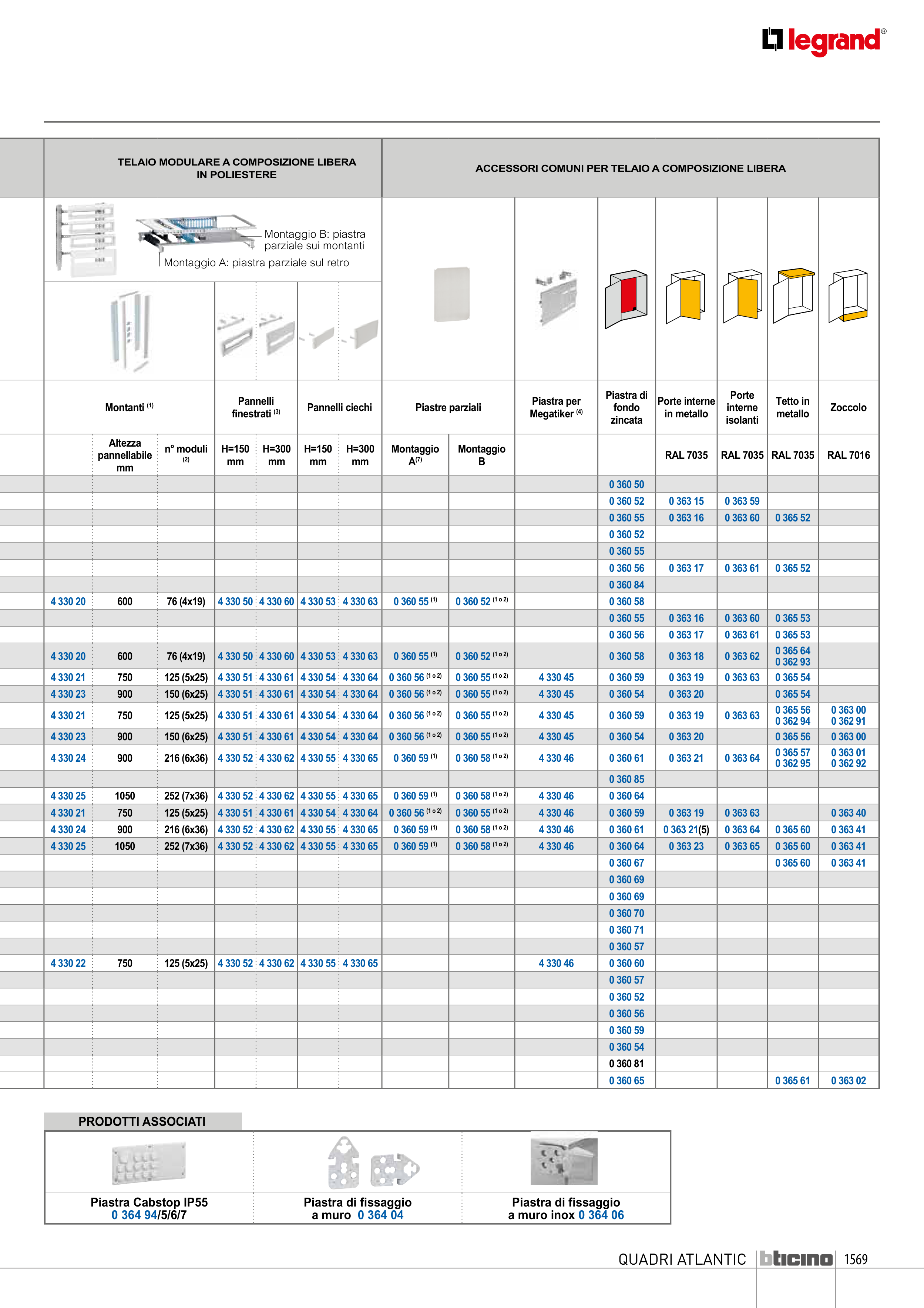 ACCESSORI COMUNI PER TELAIO A COMPOSIZIONE LIBERA