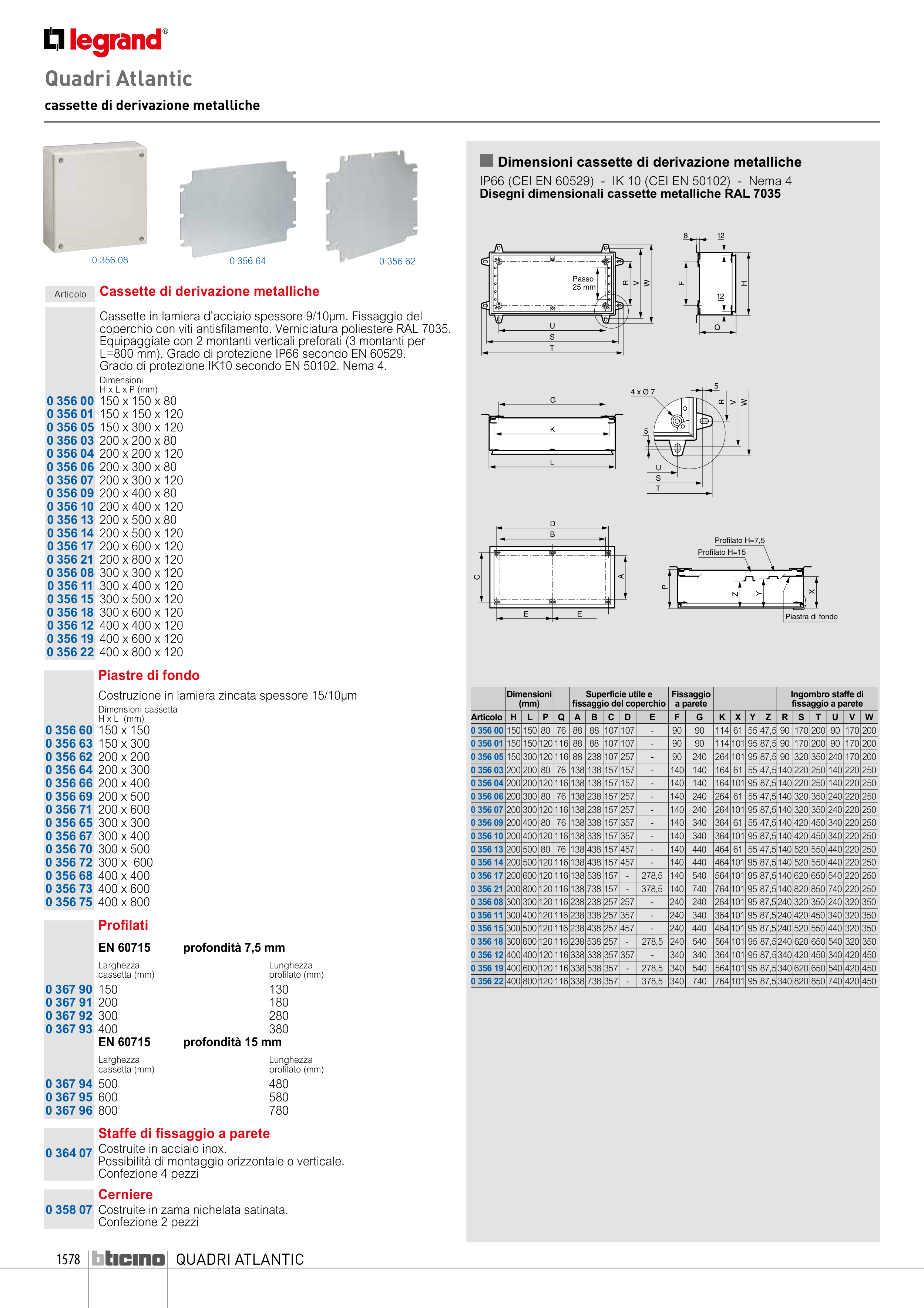 Disegni dimensionali cassette metalliche RAL 7035