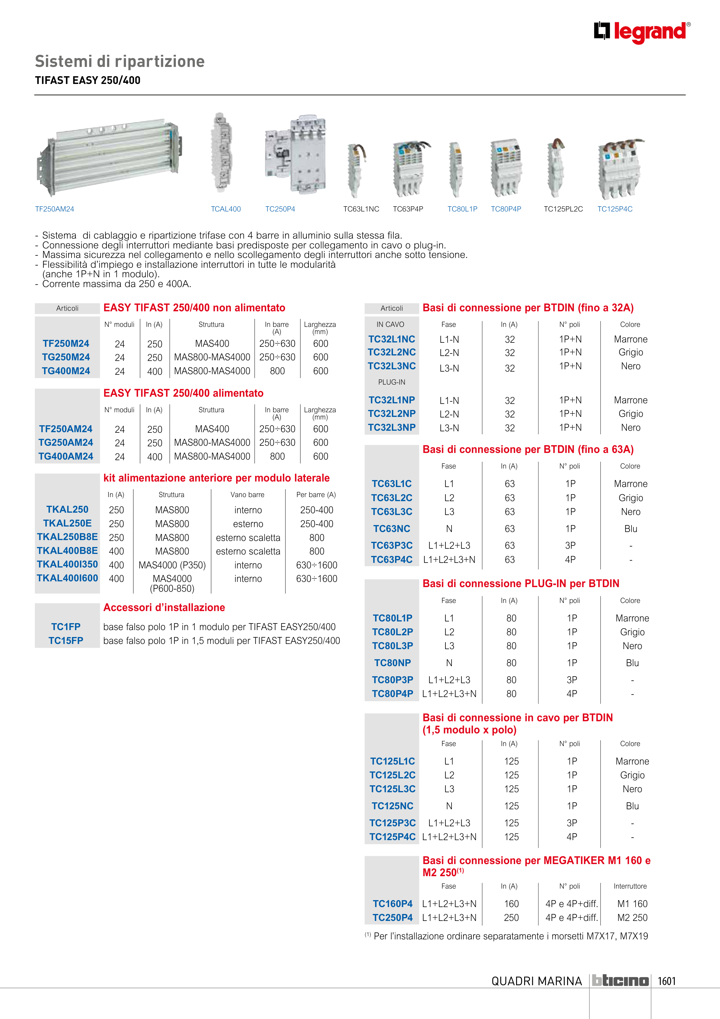 base falso polo 1P in 1,5 moduli per TIFAST EASY250/400