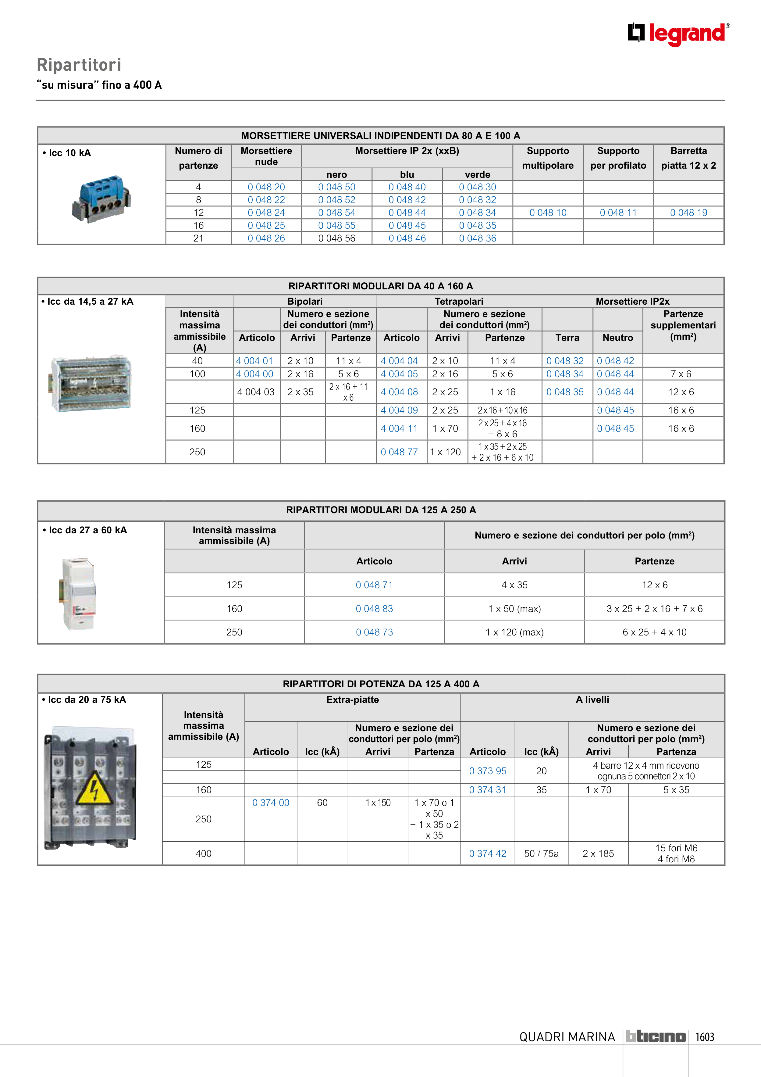 RIPARTITORI DI POTENZA DA 125 A 400 A