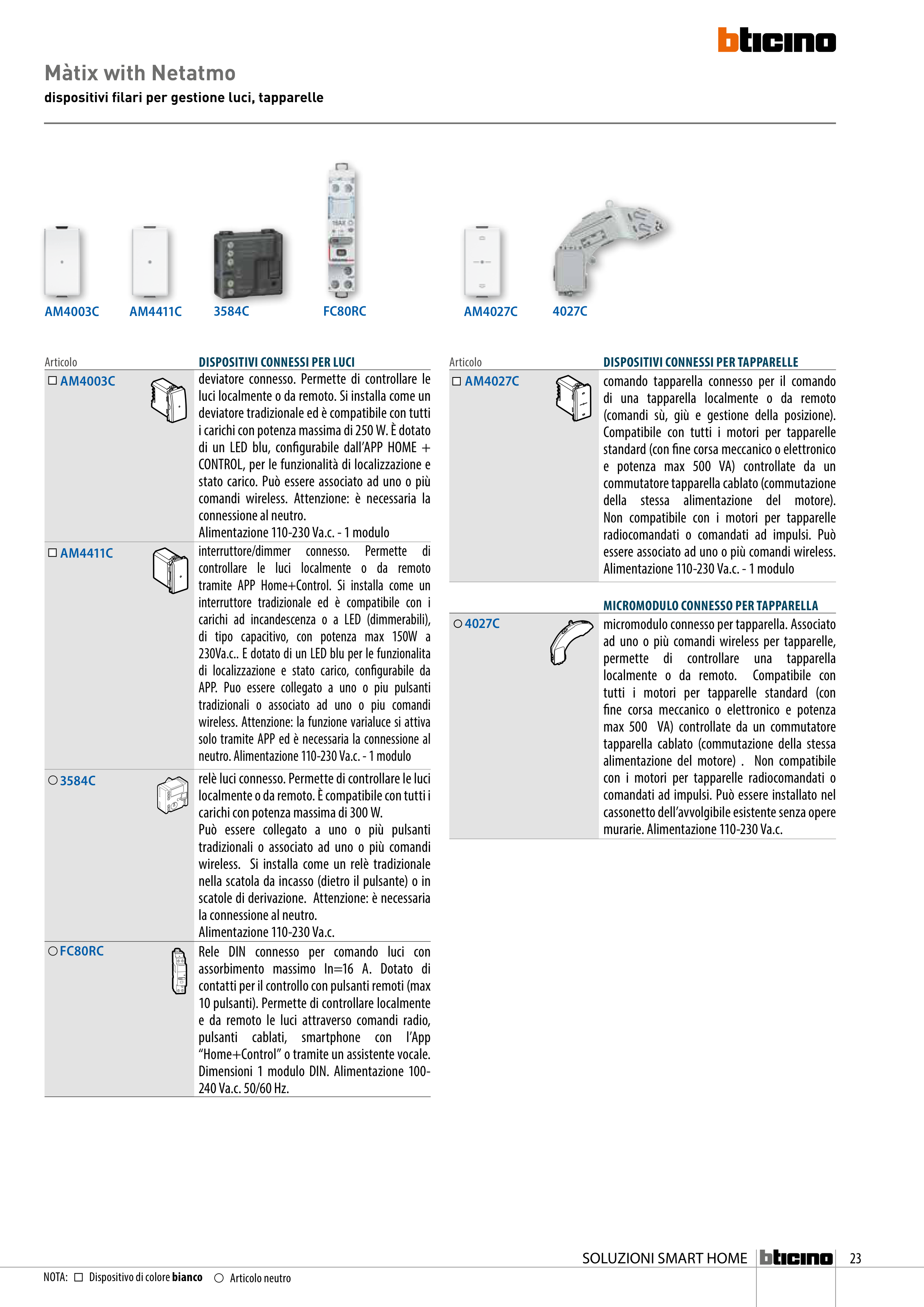 dispositivi filari per gestione luci, tapparelle