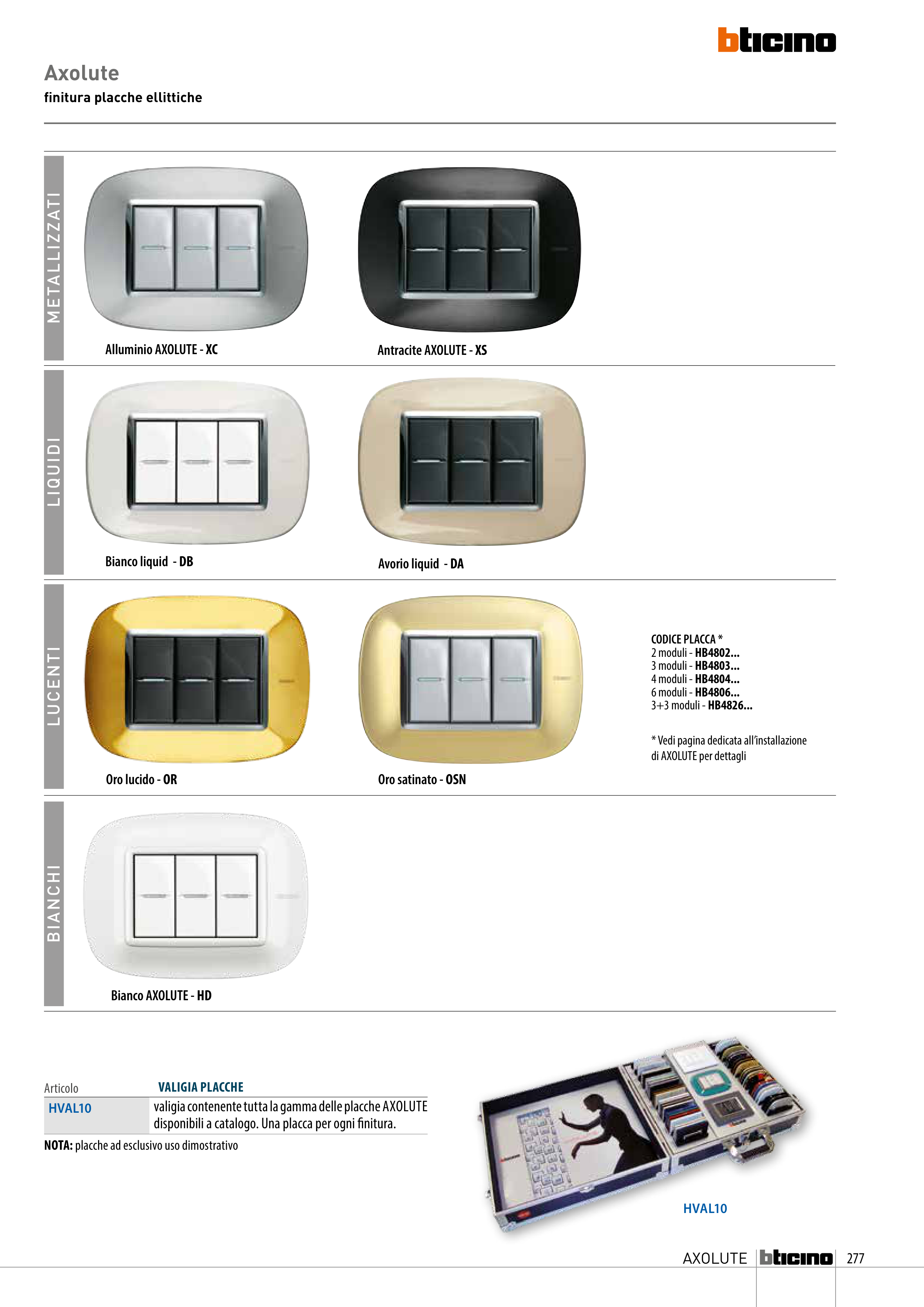 valigia contenente tutta la gamma delle placche AXOLUTE
