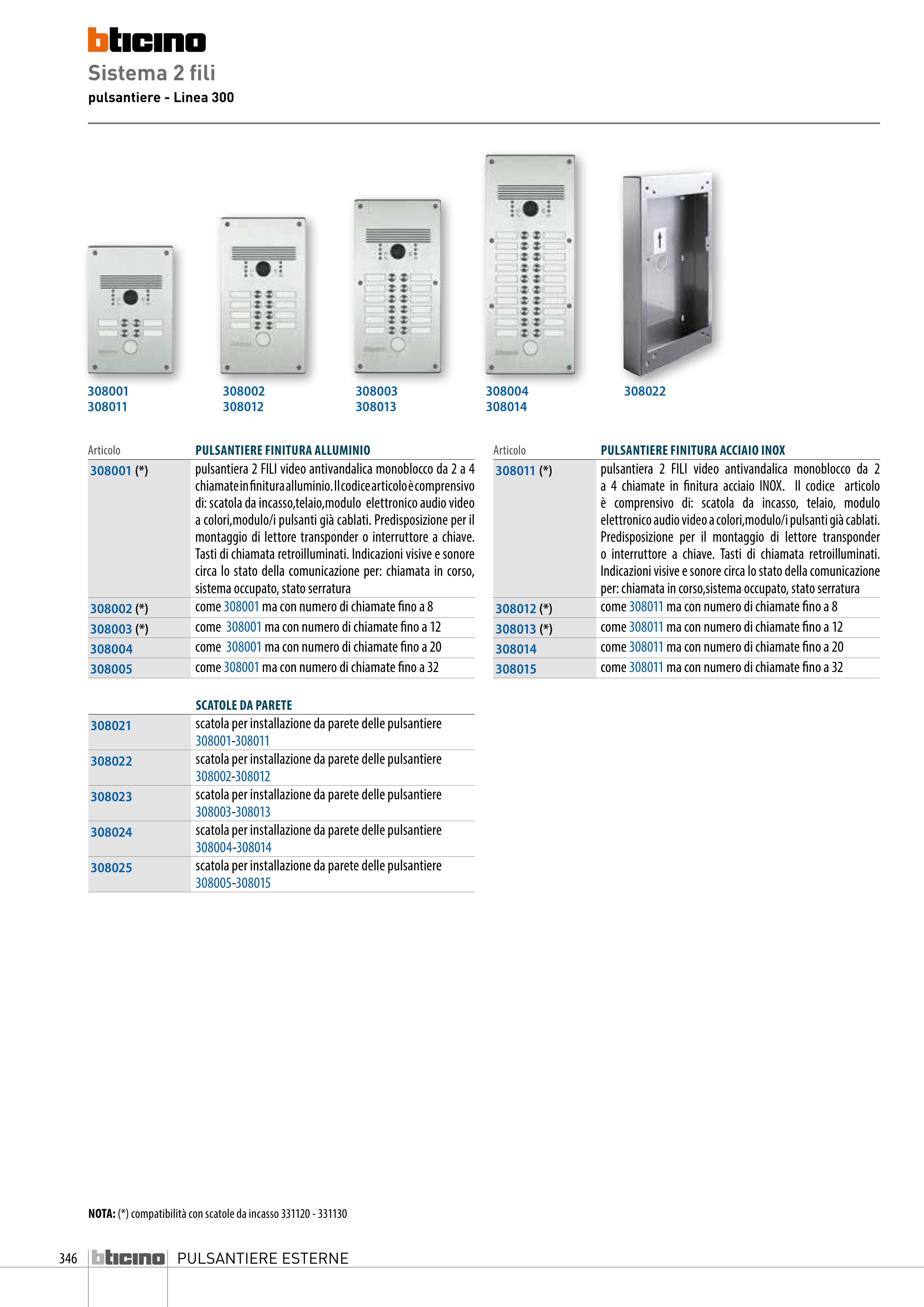chiamate in finitura alluminio. Il codice articolo è comprensivo