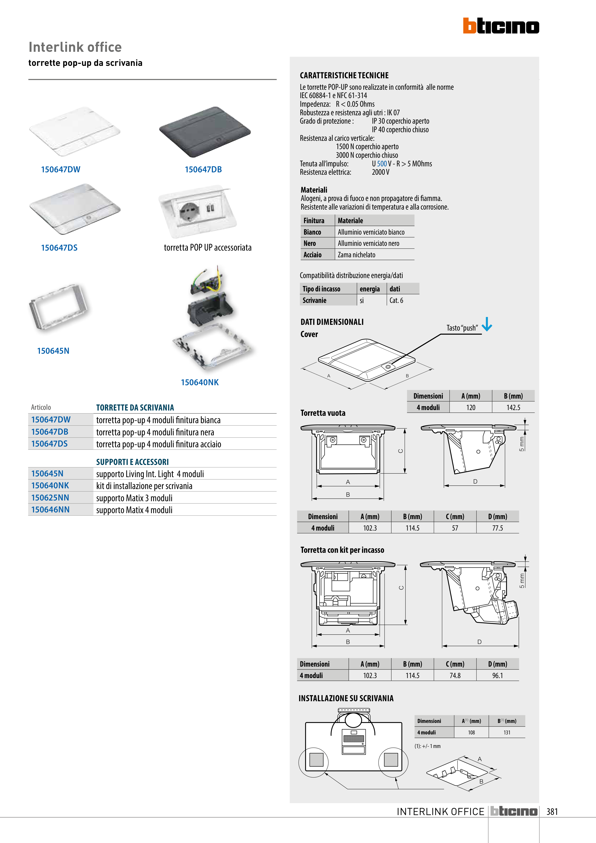 Le torrette POP-UP sono realizzate in conformità alle norme