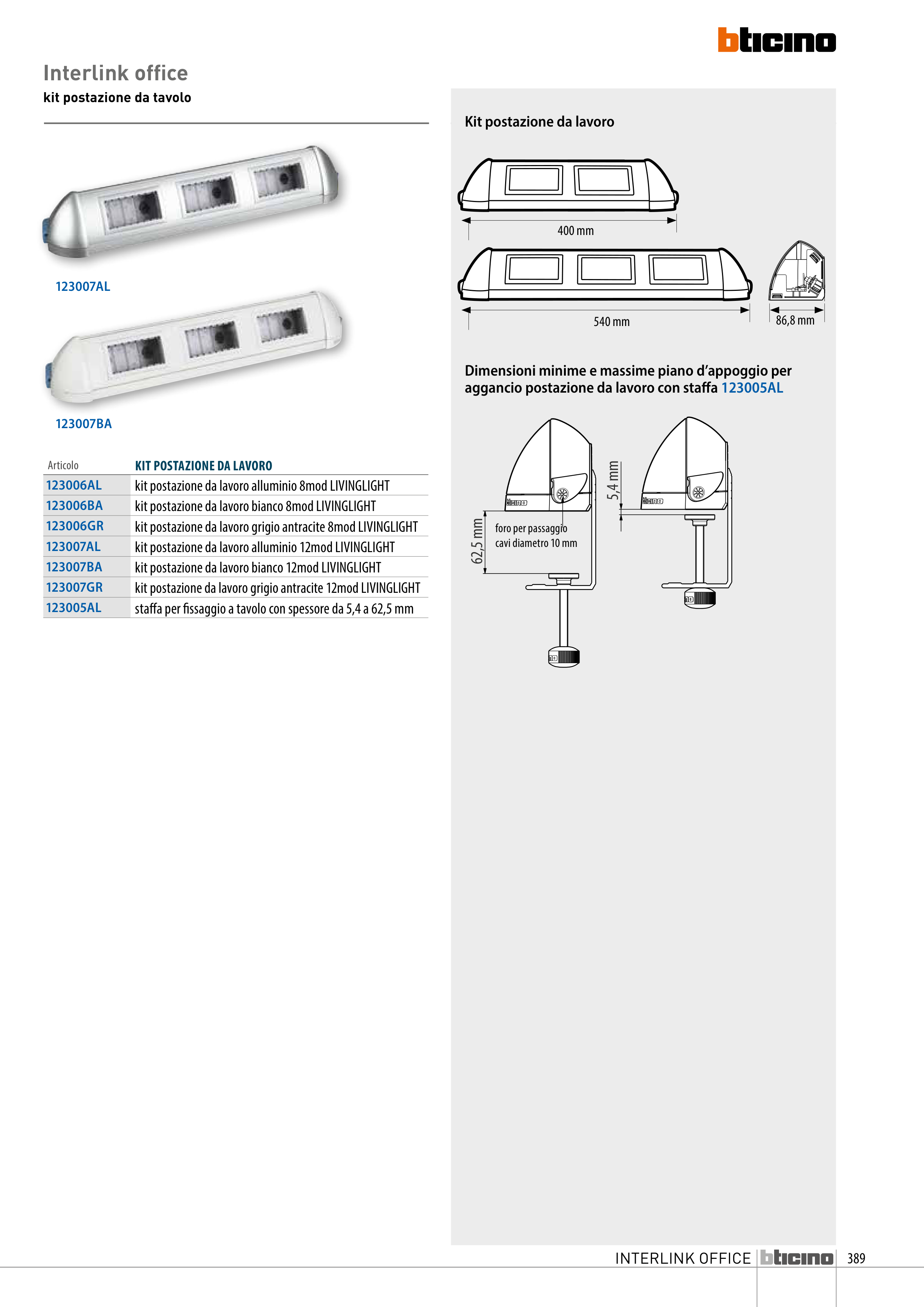 aggancio postazione da lavoro con staffa 123005AL