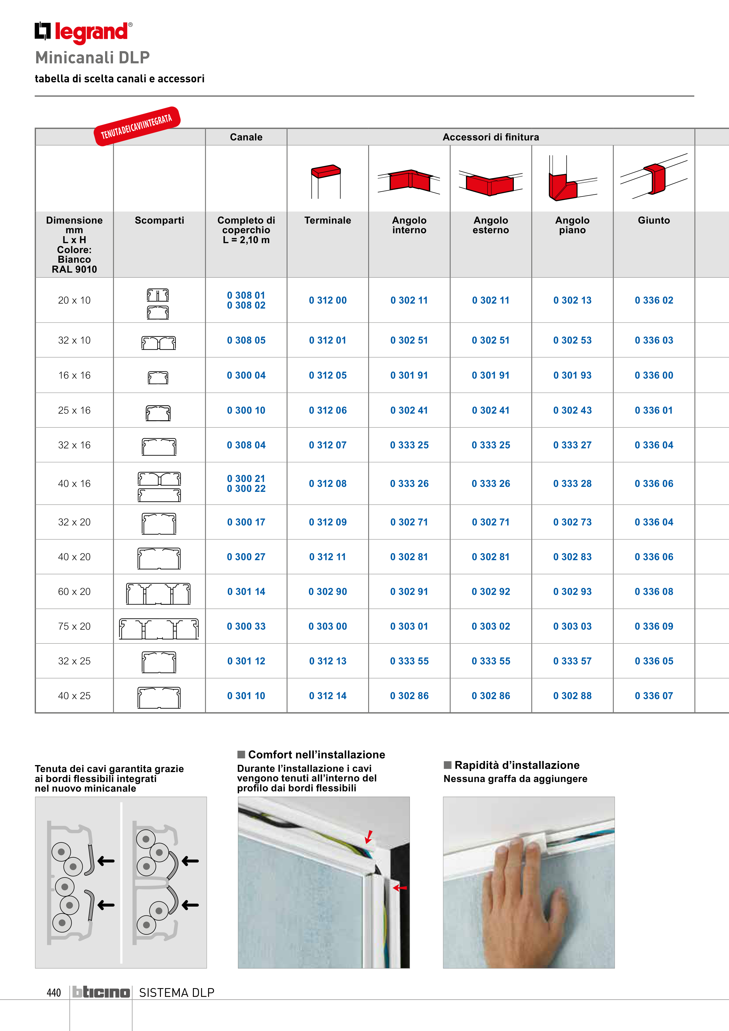 tabella di scelta canali e accessori