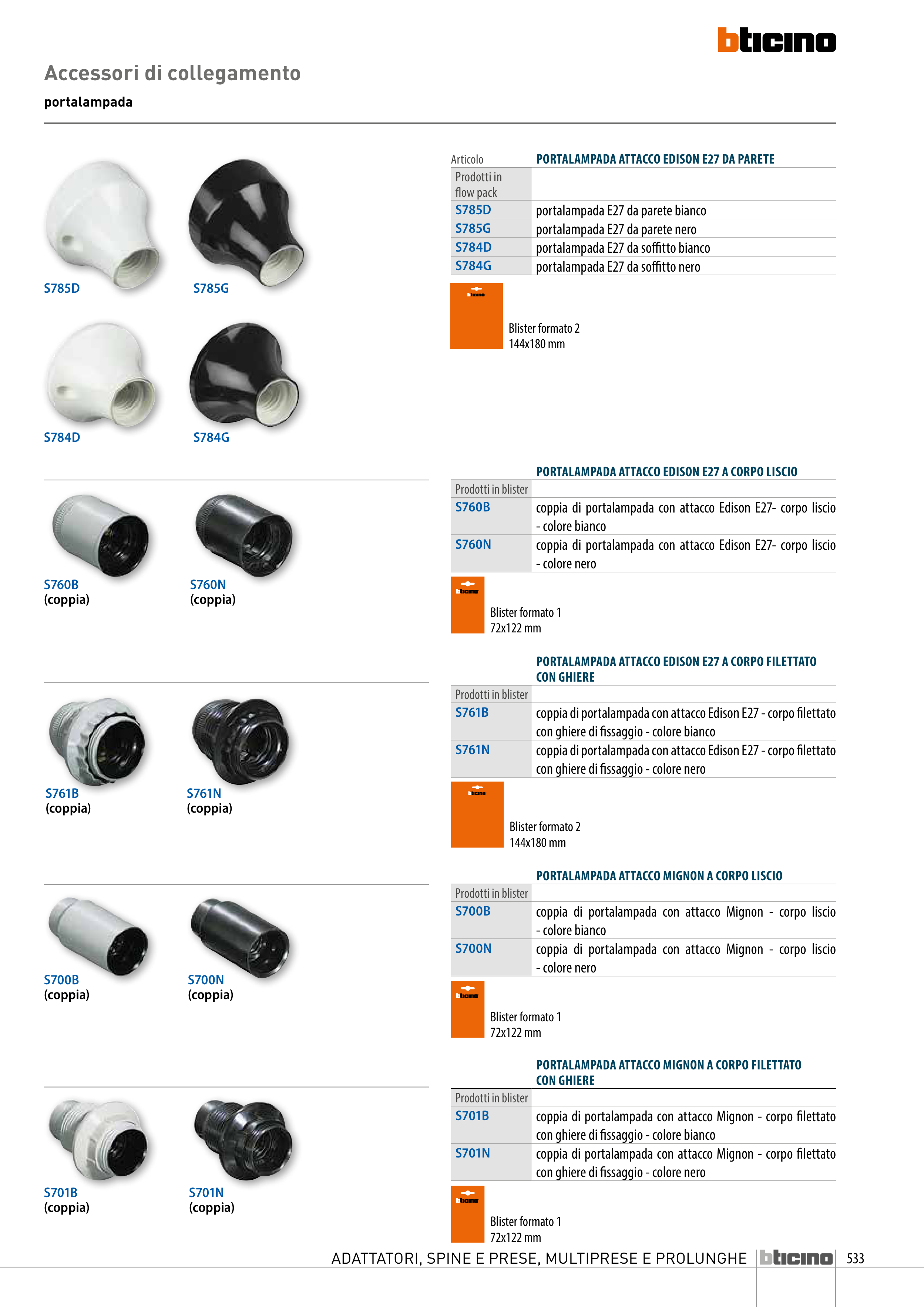 PORTALAMPADA ATTACCO EDISON E27 A CORPO LISCIO