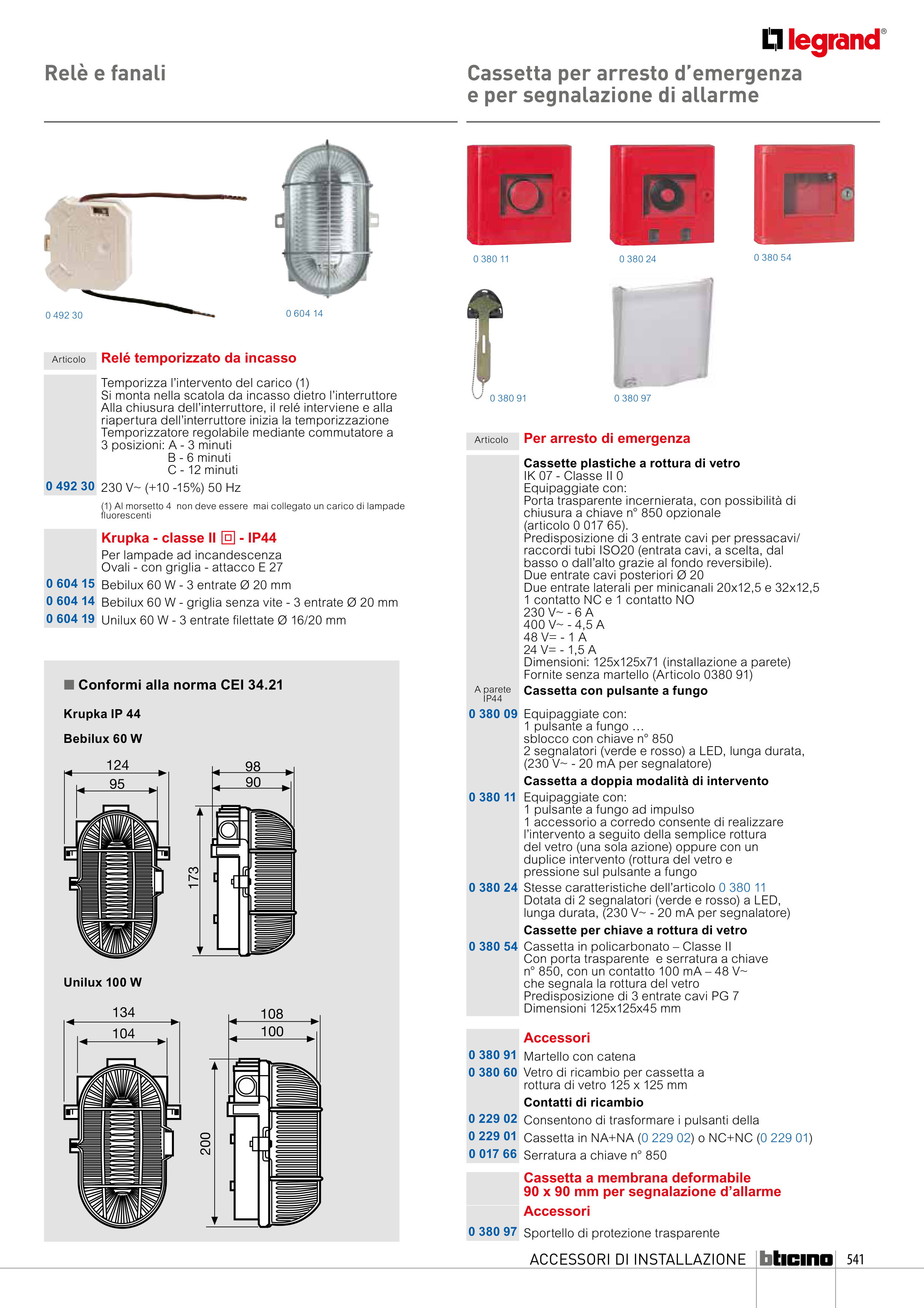 n Conformi alla norma CEI 34.21