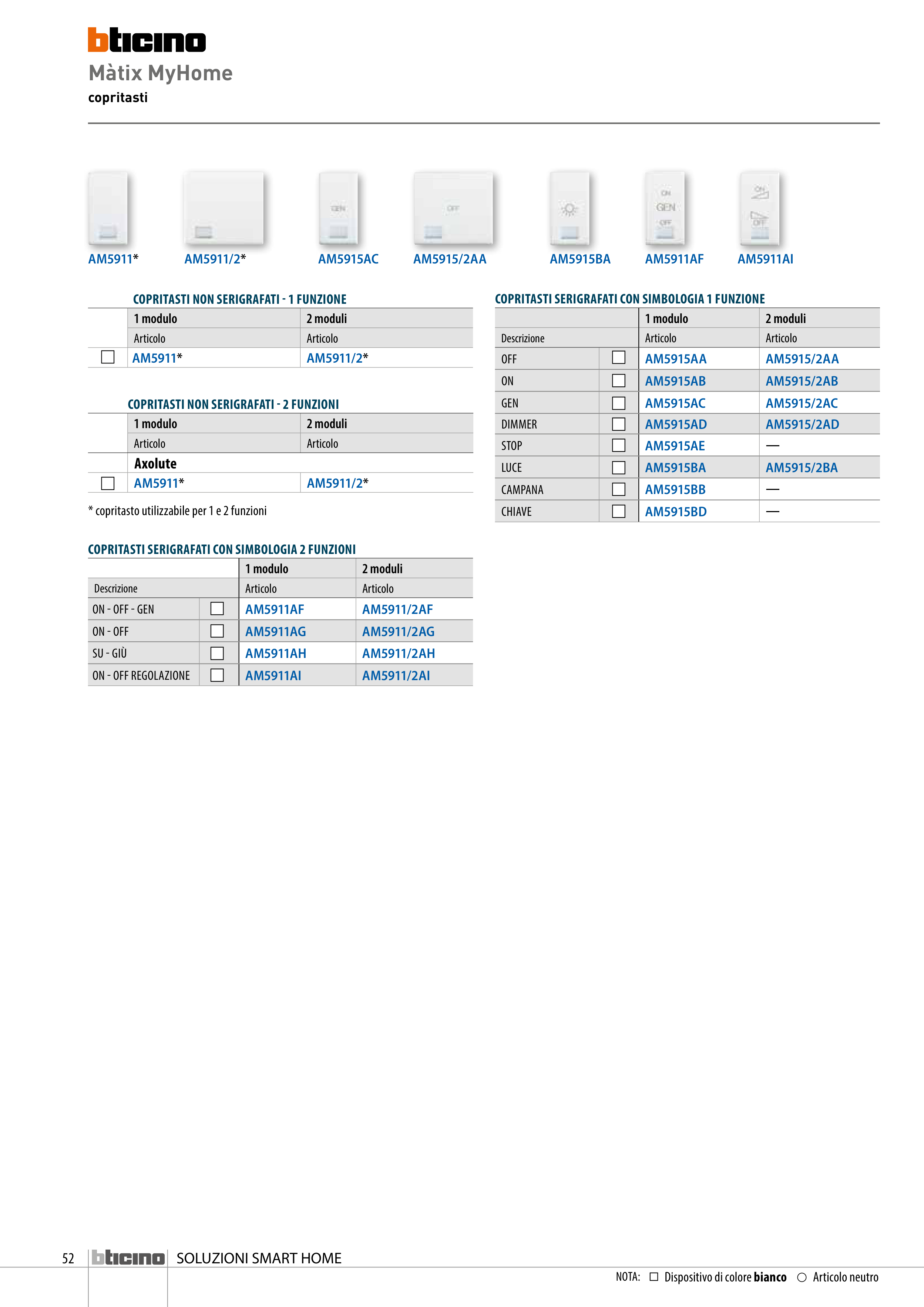 COPRITASTI SERIGRAFATI CON SIMBOLOGIA 1 FUNZIONE