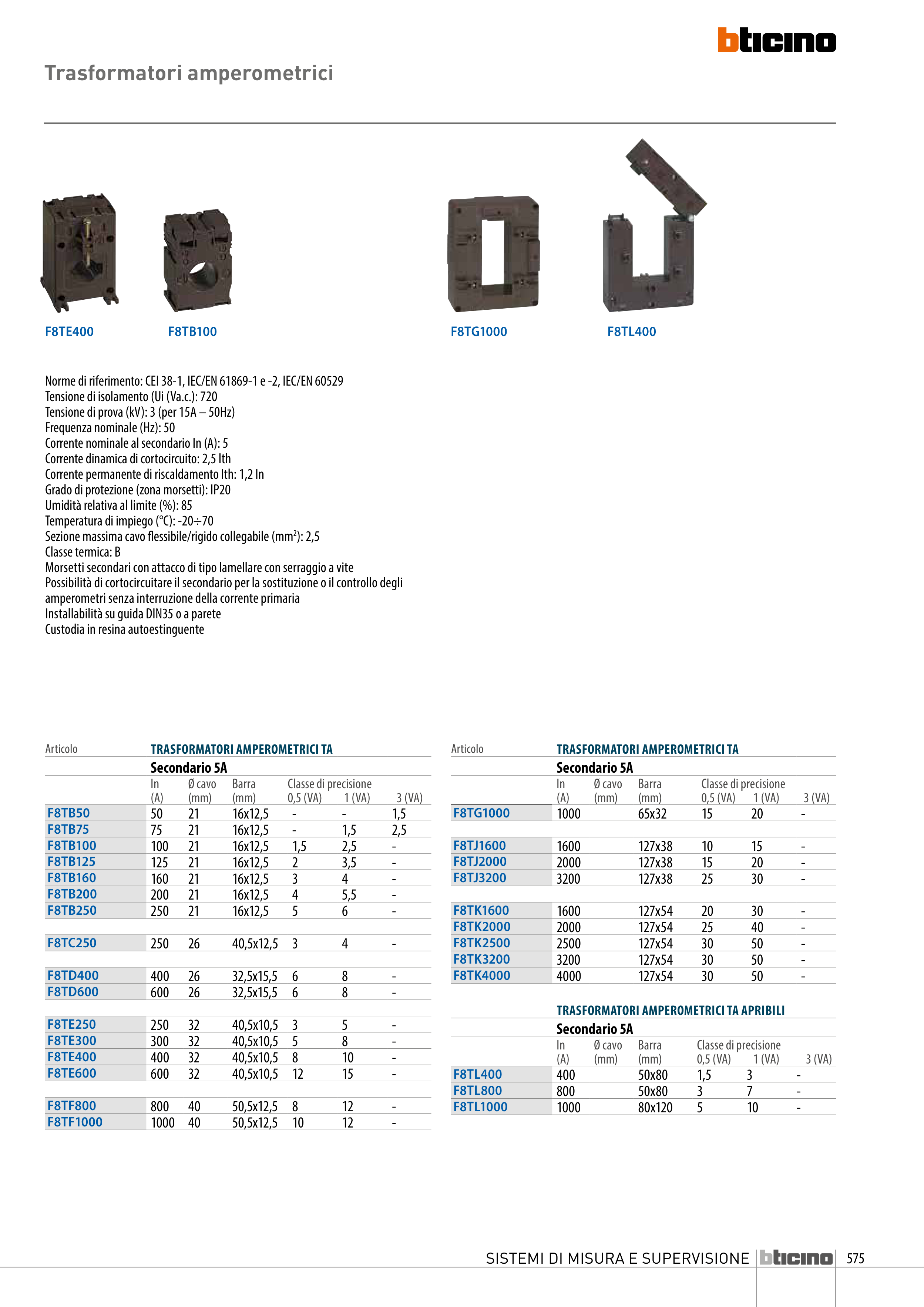 Norme di riferimento: CEI 38-1, IEC/EN 61869-1 e -2, IEC/EN 60529