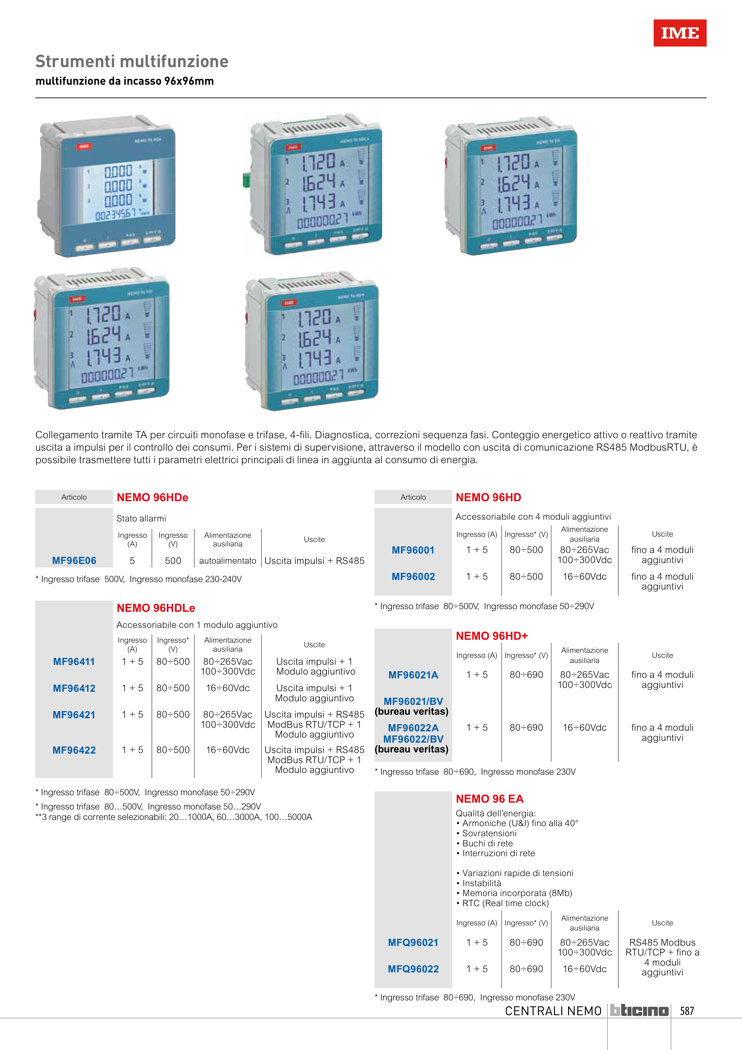 uscita a impulsi per il controllo dei consumi. Per i sistemi di supervisione, attraverso il modello con uscita di comunicazione RS485 ModbusRTU, è