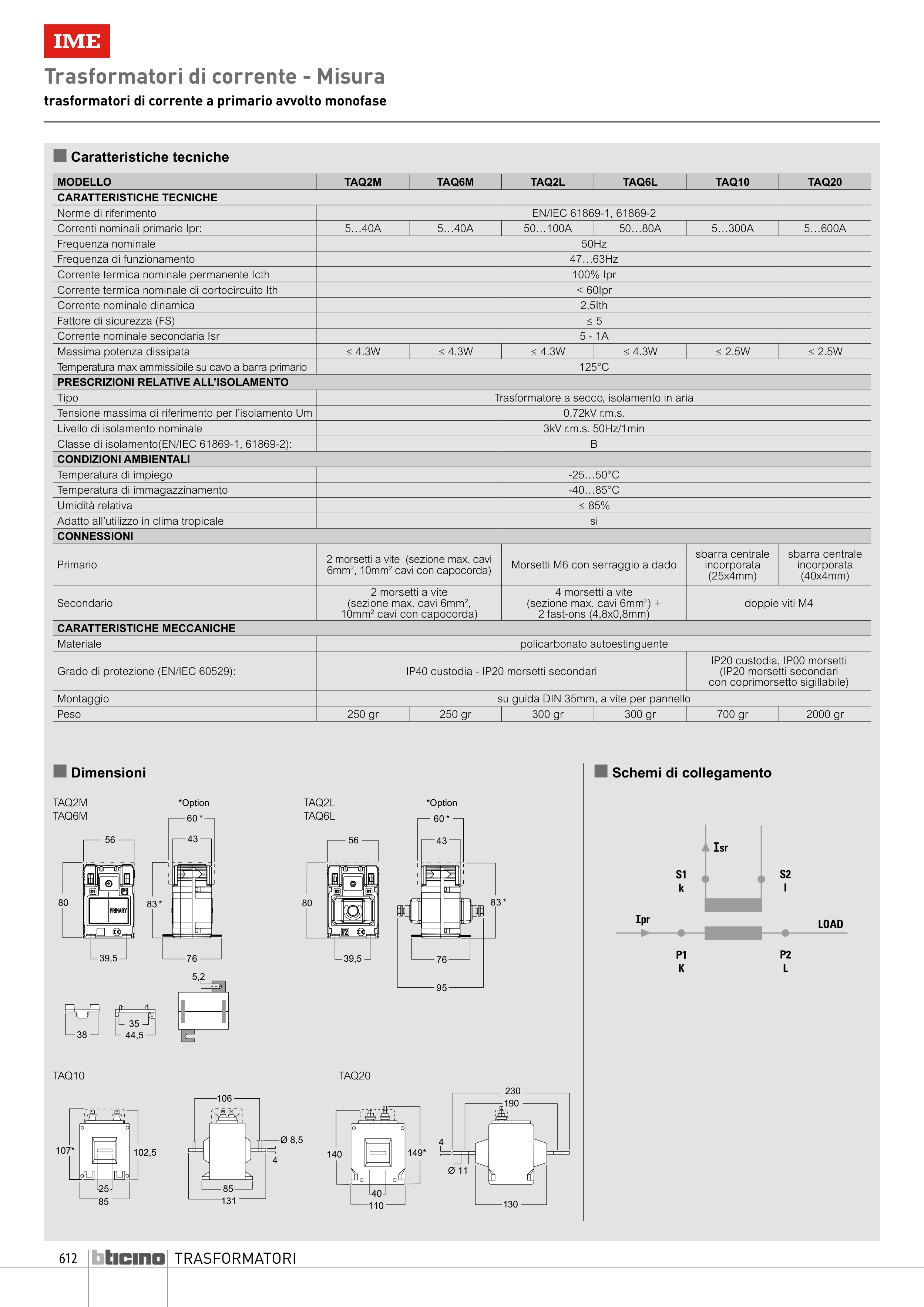 Classe di isolamento(EN/IEC 61869-1, 61869-2):