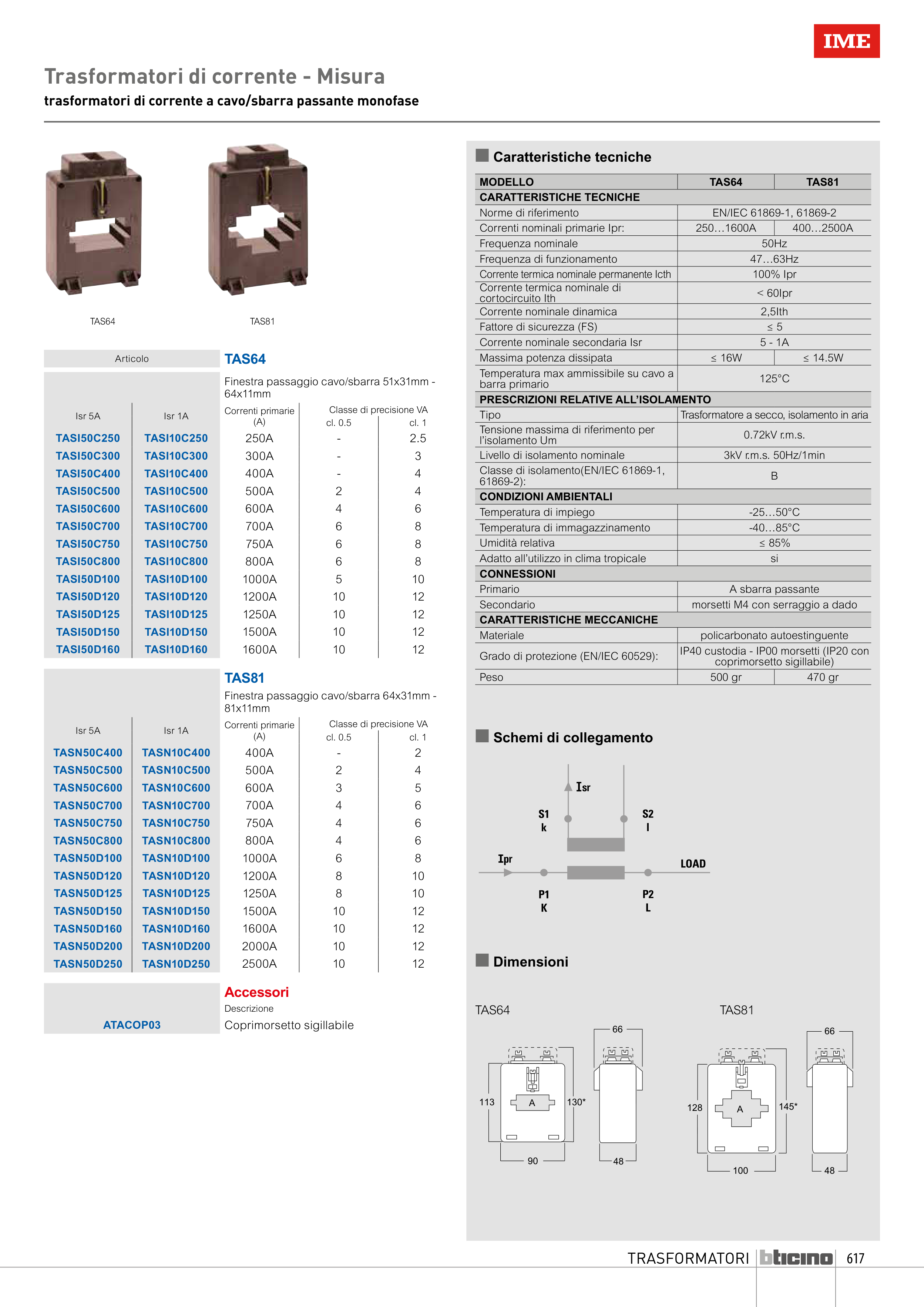 trasformatori di corrente a cavo/sbarra passante monofase
