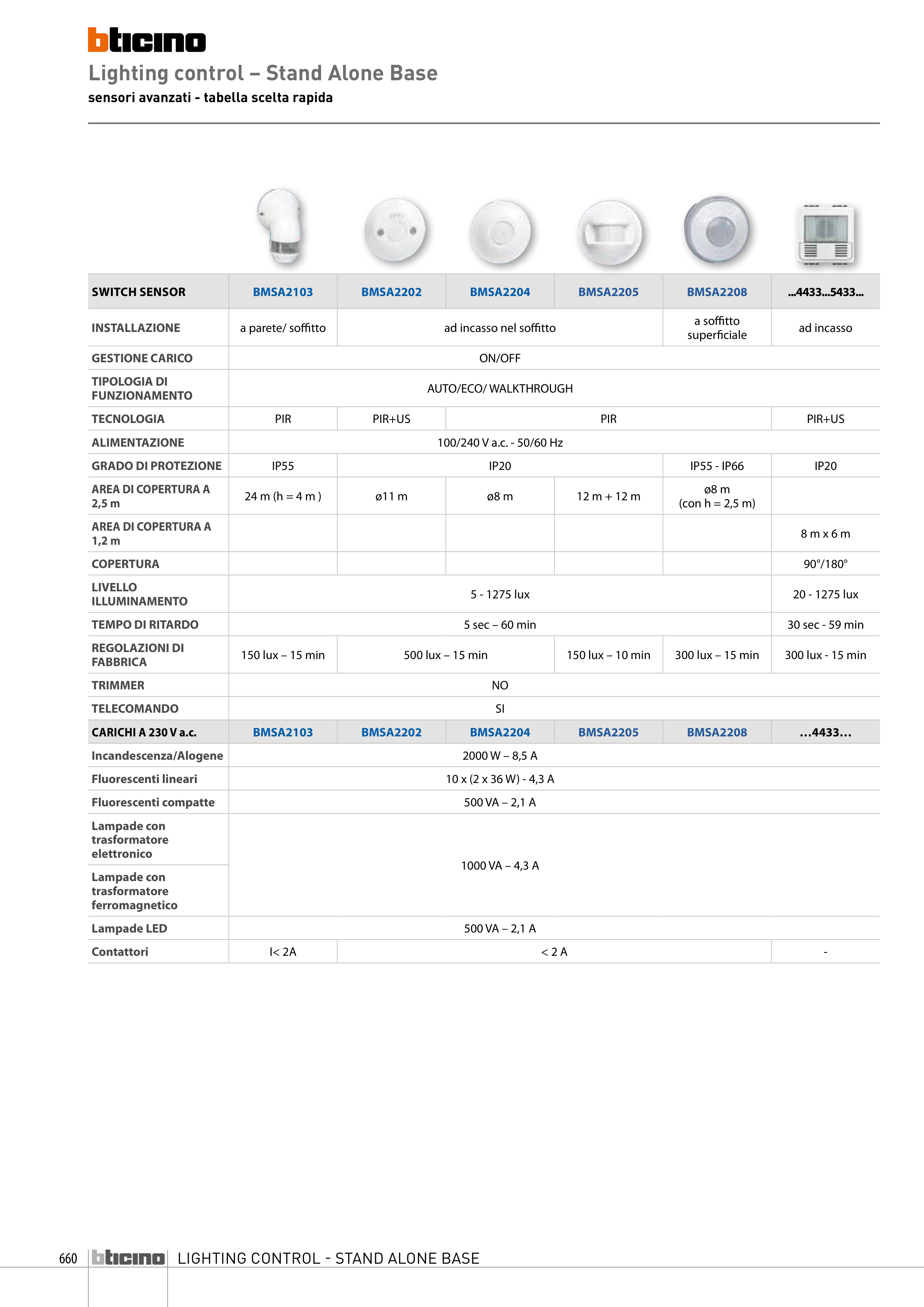 sensori avanzati - tabella scelta rapida