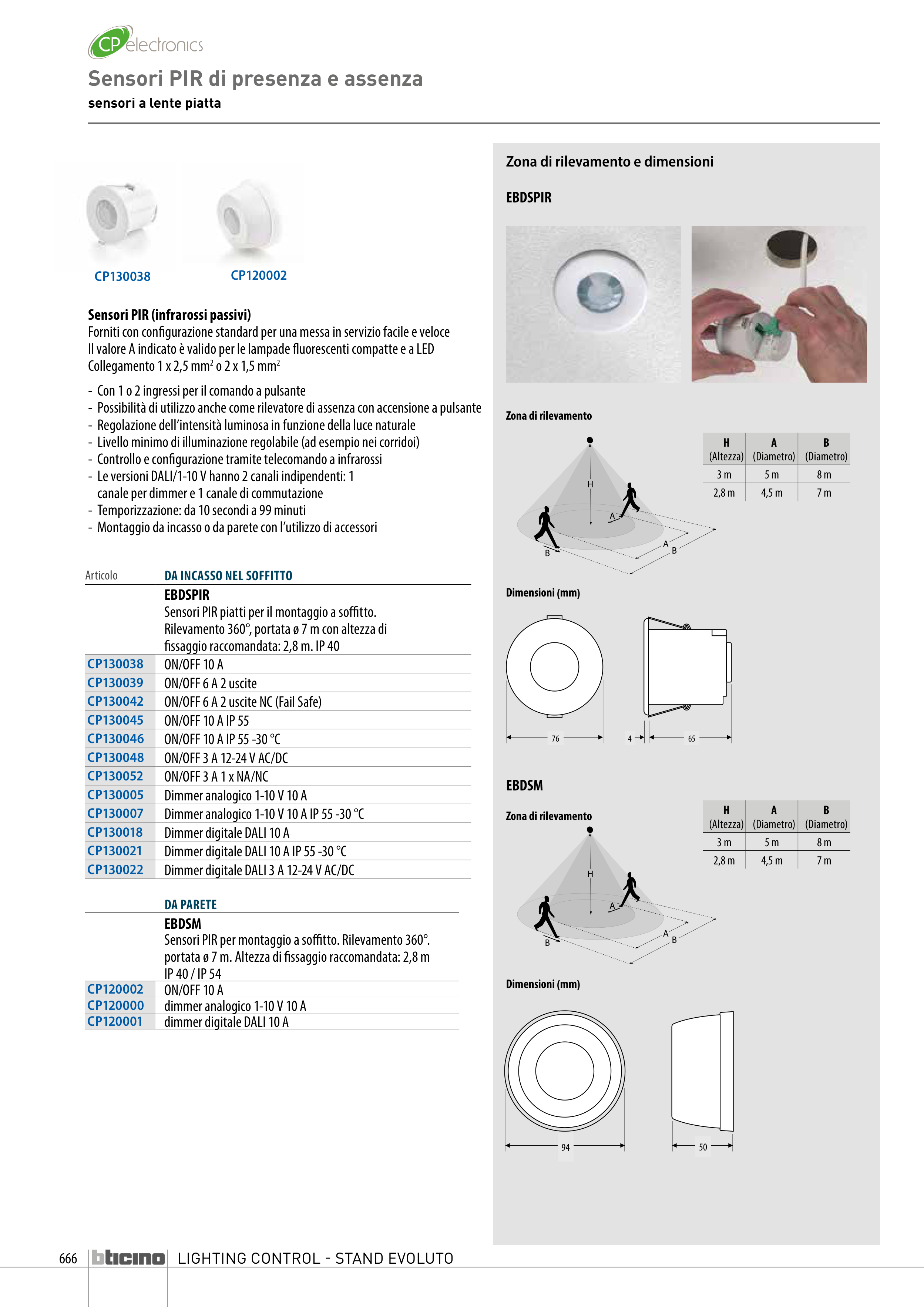 Sensori PIR per montaggio a soffitto. Rilevamento 360°.
