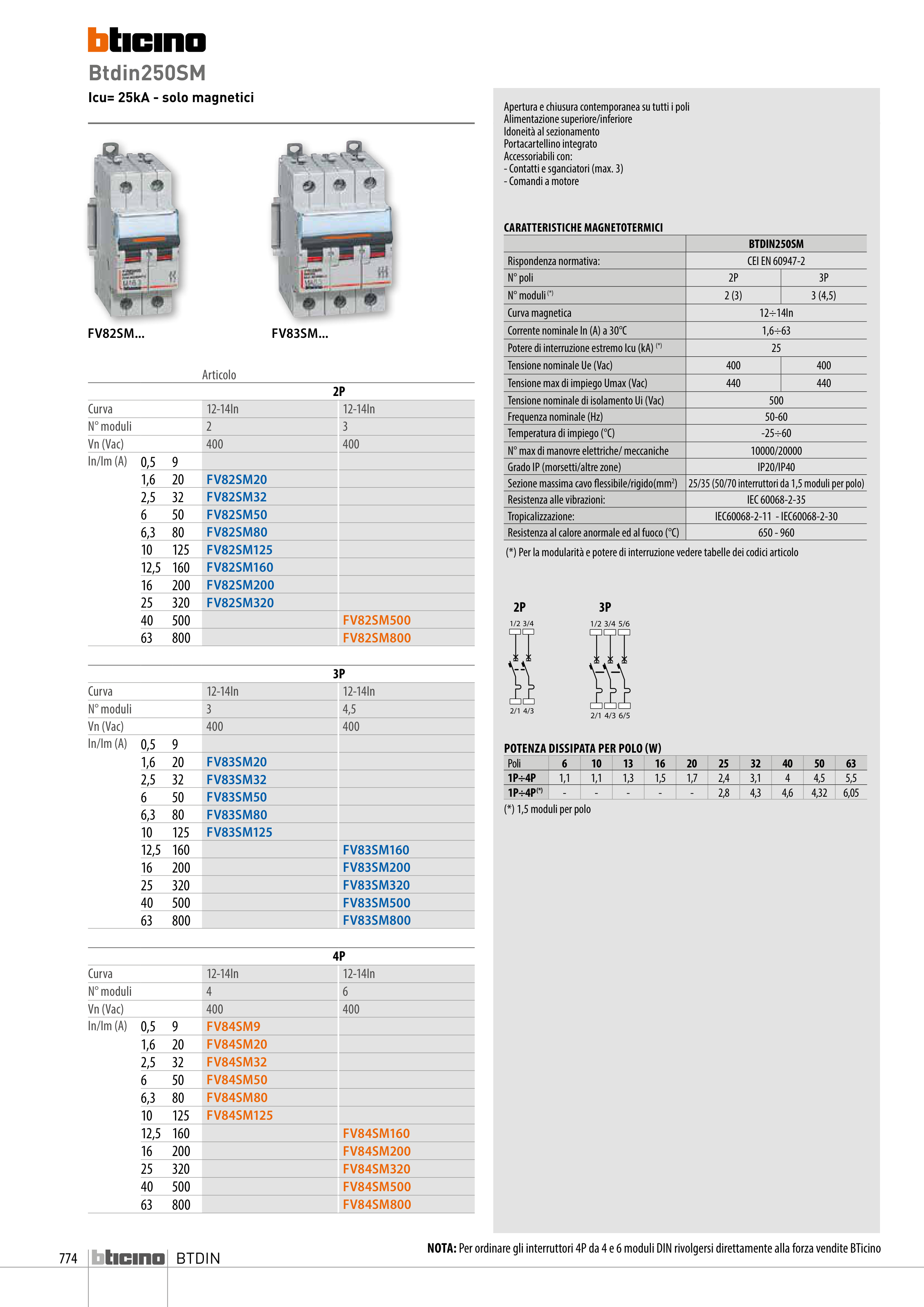 NOTA: Per ordinare gli interruttori 4P da 4 e 6 moduli DIN rivolgersi direttamente alla forza vendite BTicino