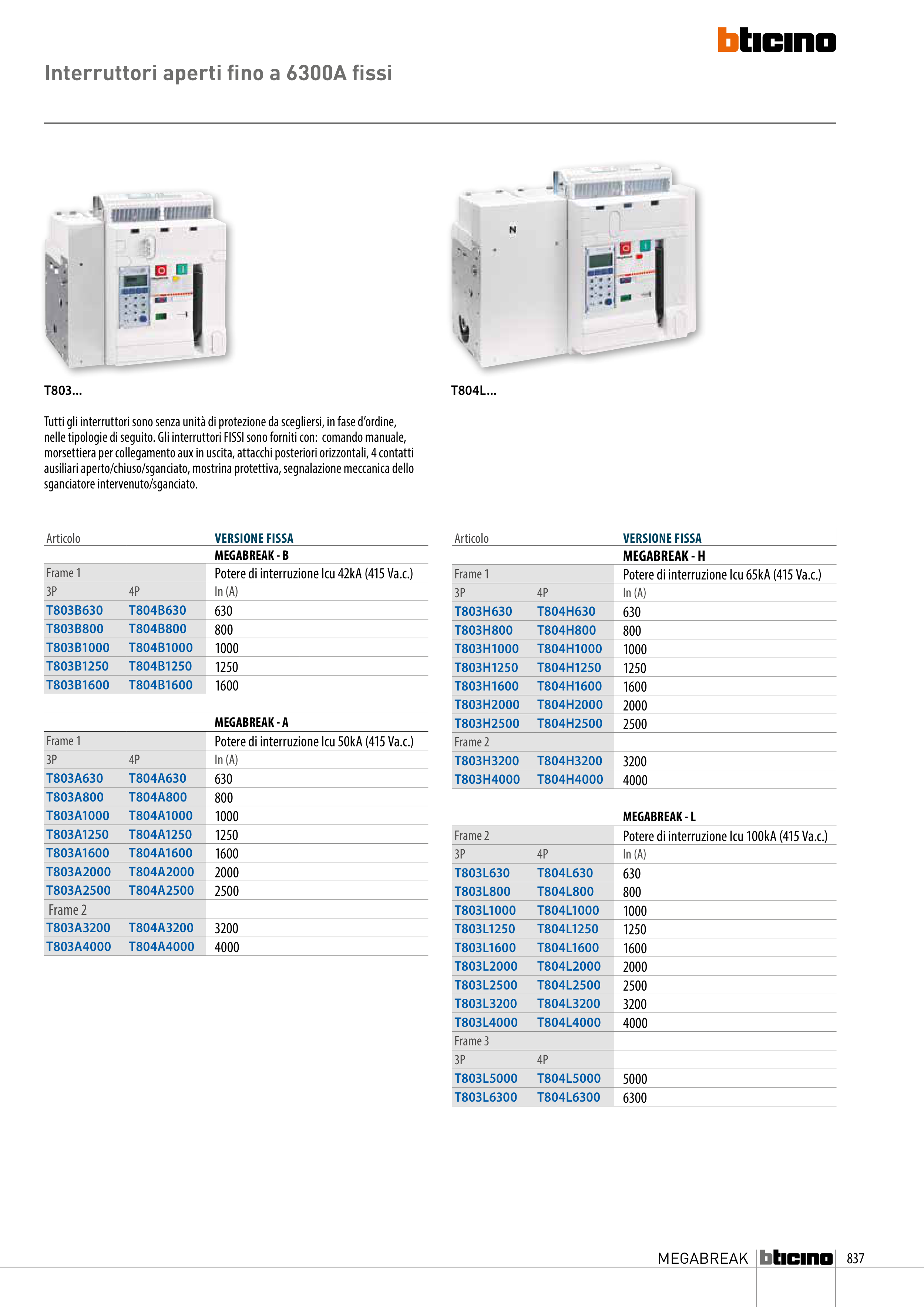 Interruttori aperti fino a 6300A fissi