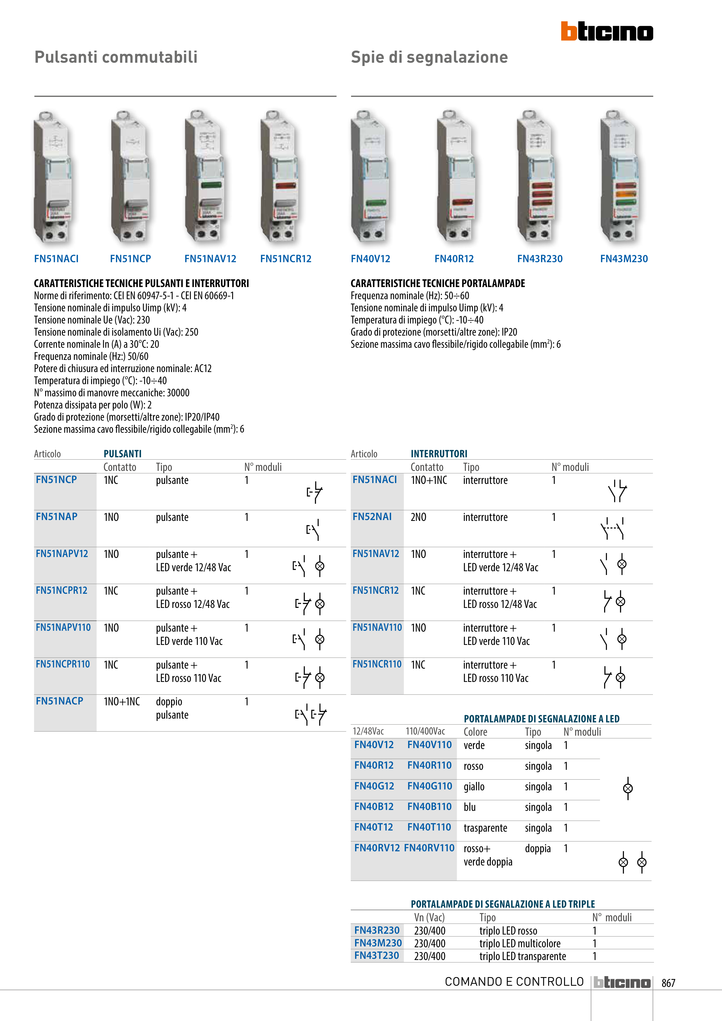 CARATTERISTICHE TECNICHE PULSANTI E INTERRUTTORI