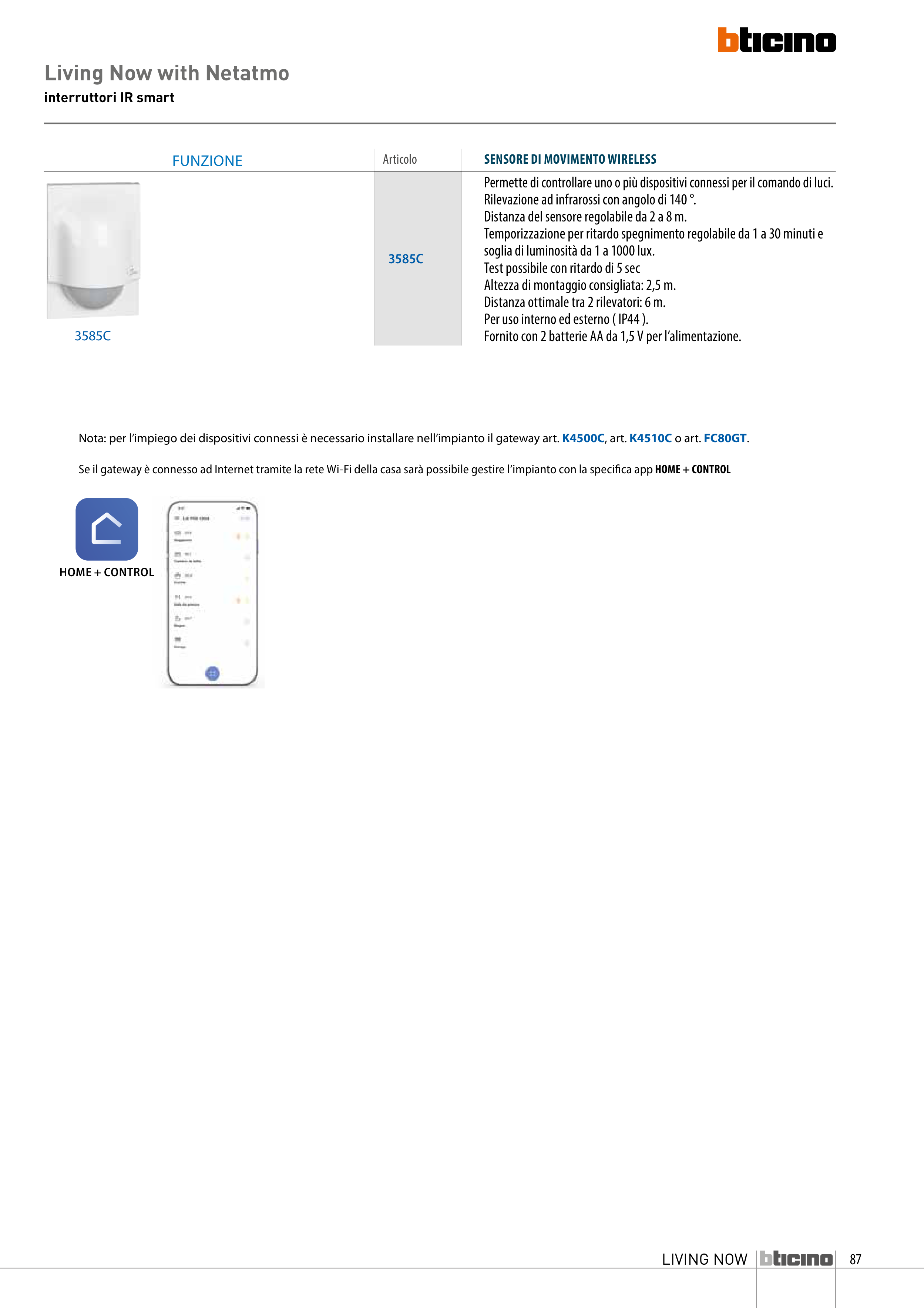 Nota: per l’impiego dei dispositivi connessi è necessario installare nell’impianto il gateway art. K4500C, art. K4510C o art. FC80GT.