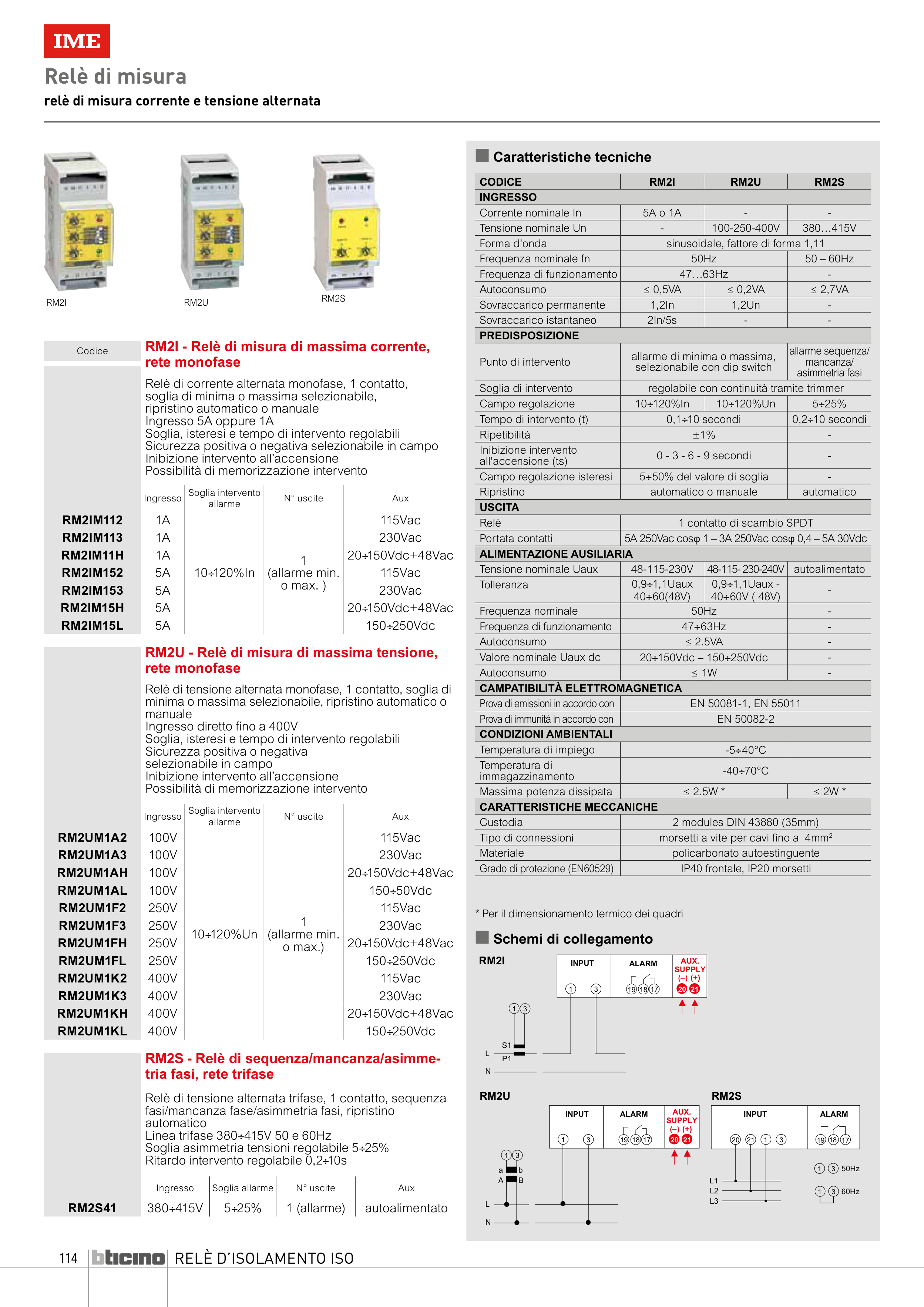 RM2U - Relè di misura di massima tensione,