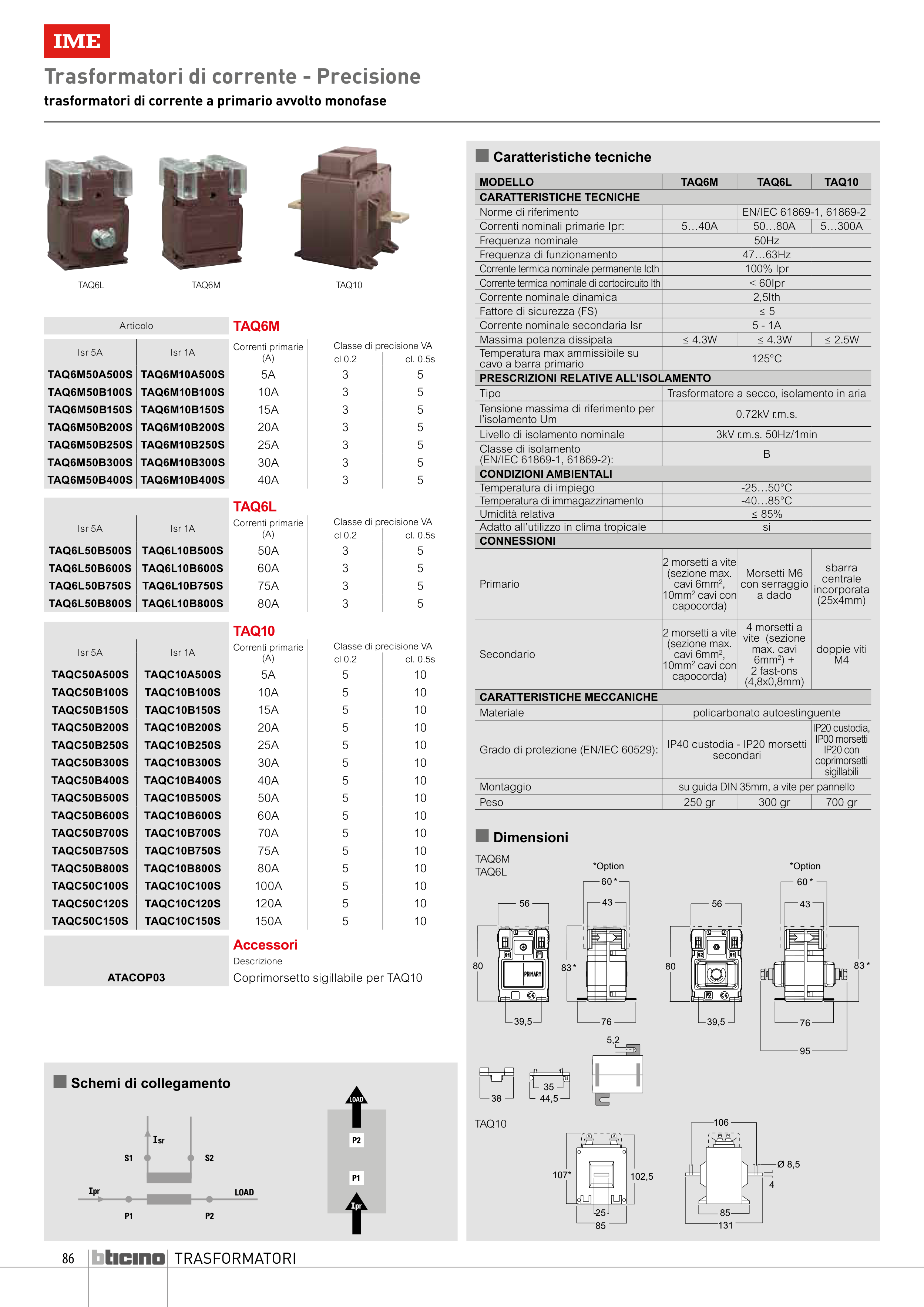 trasformatori di corrente a primario avvolto monofase