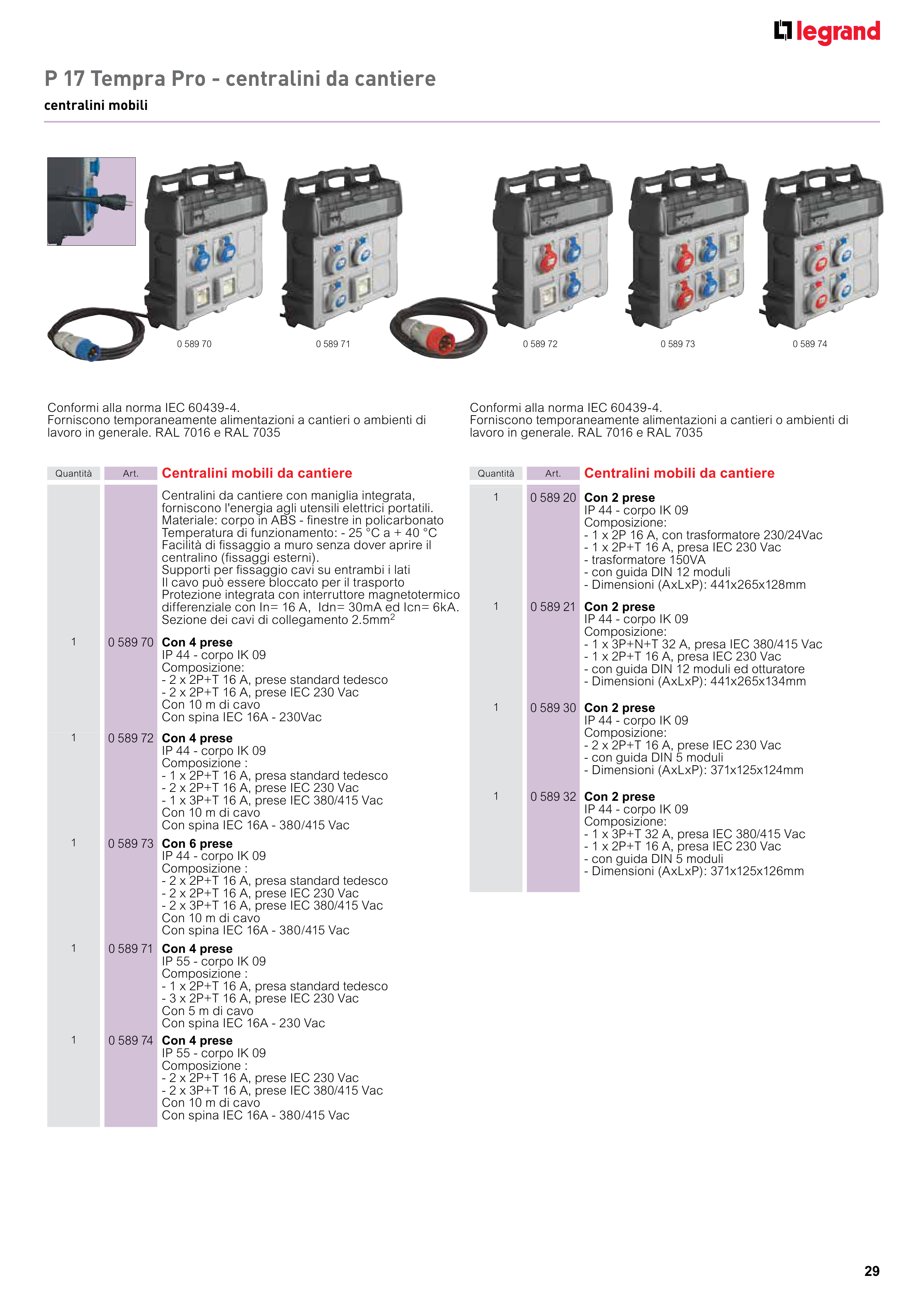 P 17 Tempra Pro - centralini da cantiere