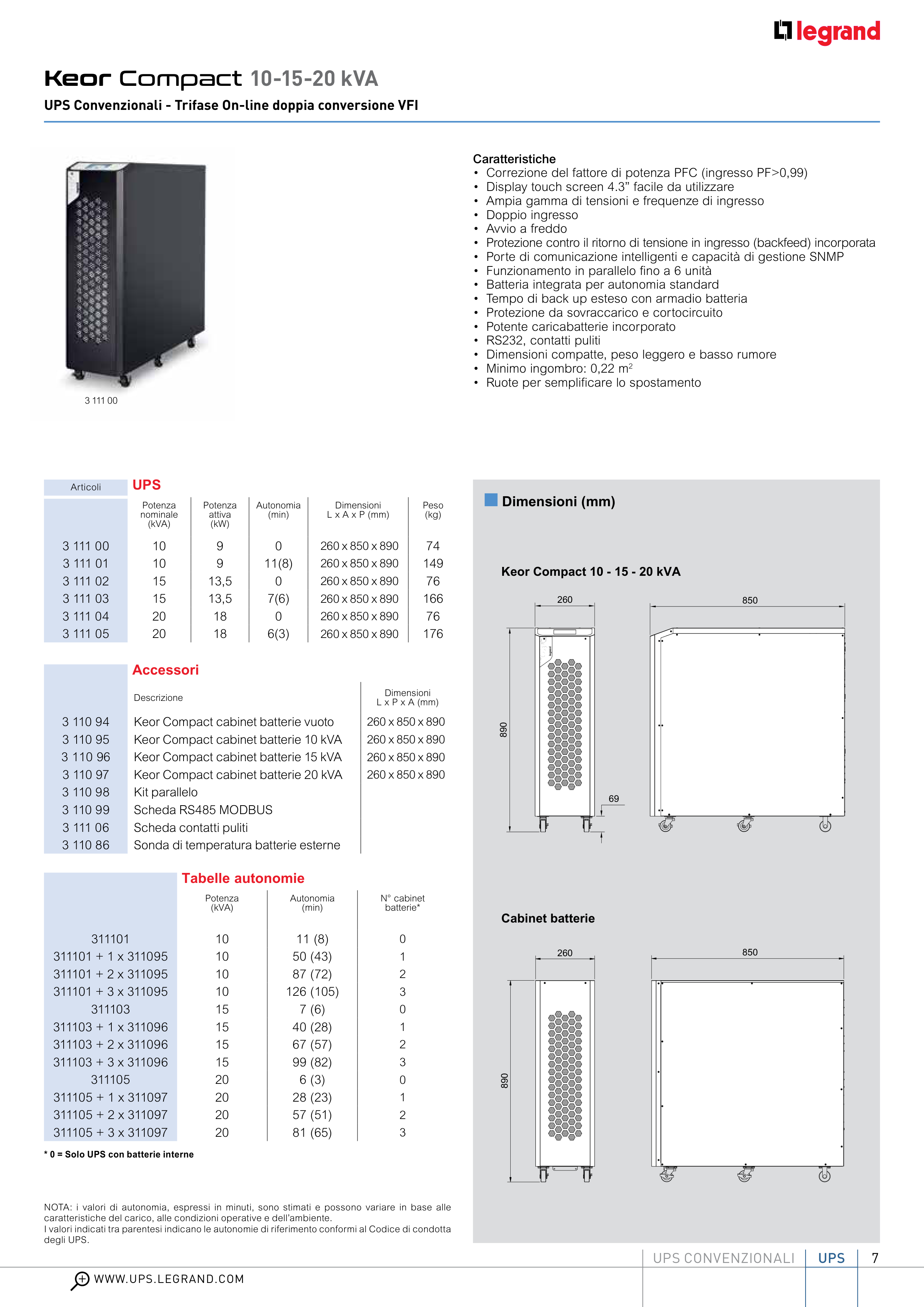 Catalogue BTicino: Keor Compact Three-Phase UPS Catalog, page 7 of 12