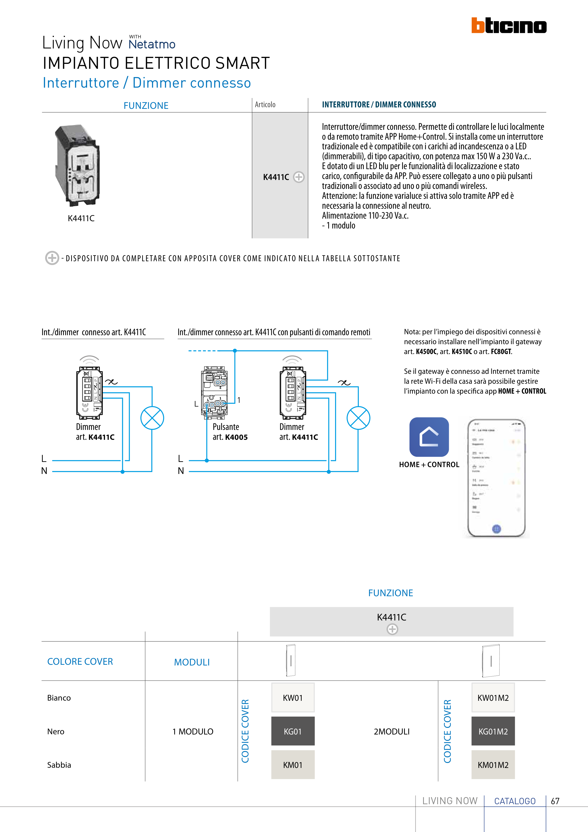 o da remoto tramite APP Home+Control. Si installa come un interruttore