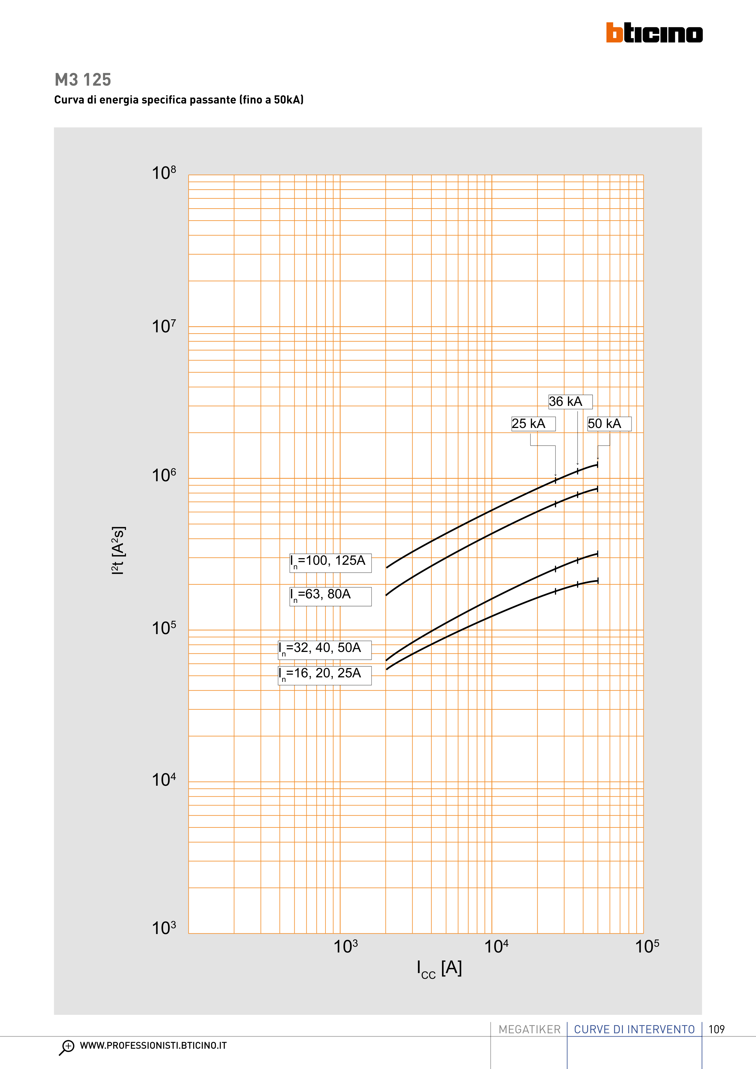 Curva di energia specifica passante (fino a 50kA)