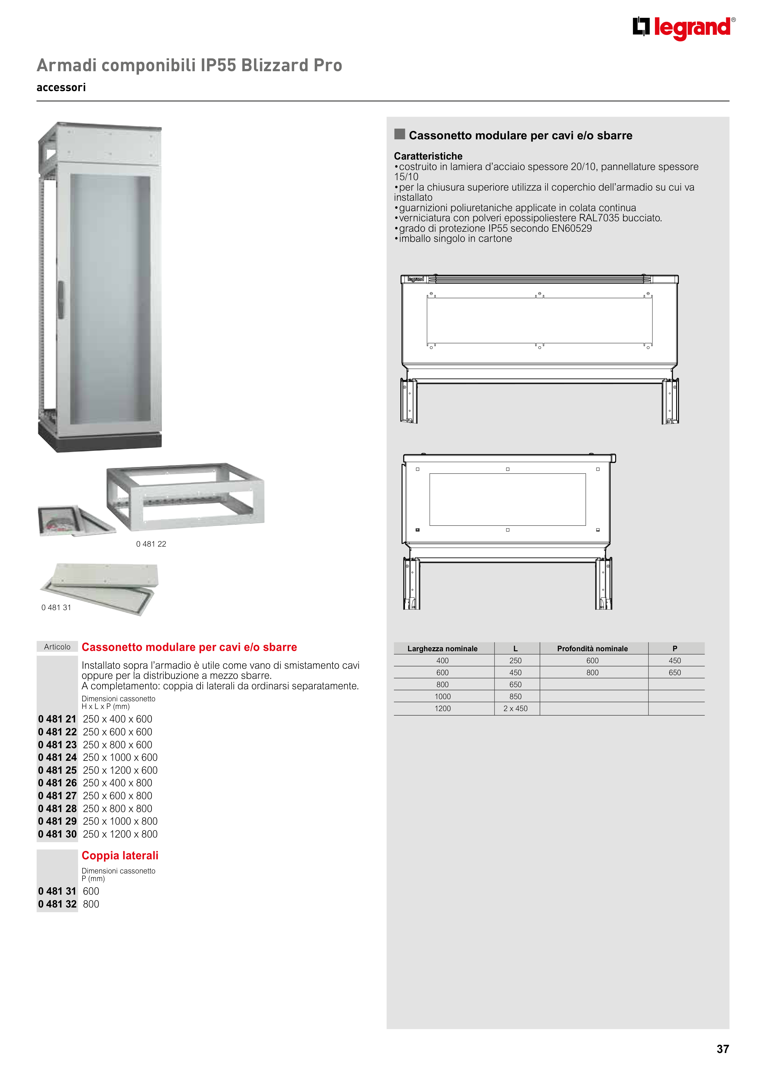 n Cassonetto modulare per cavi e/o sbarre