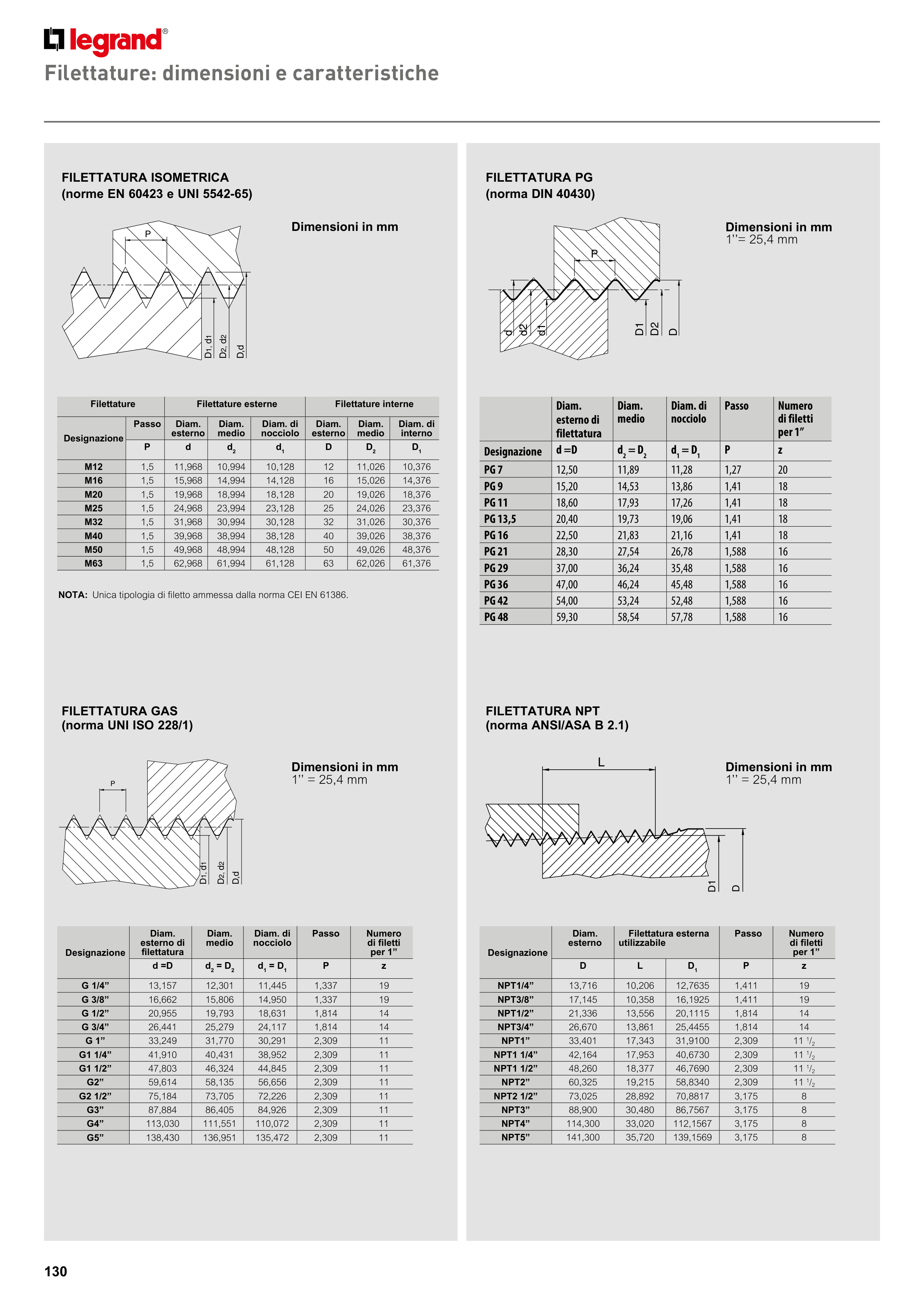 NOTA: Unica tipologia di filetto ammessa dalla norma CEI EN 61386.