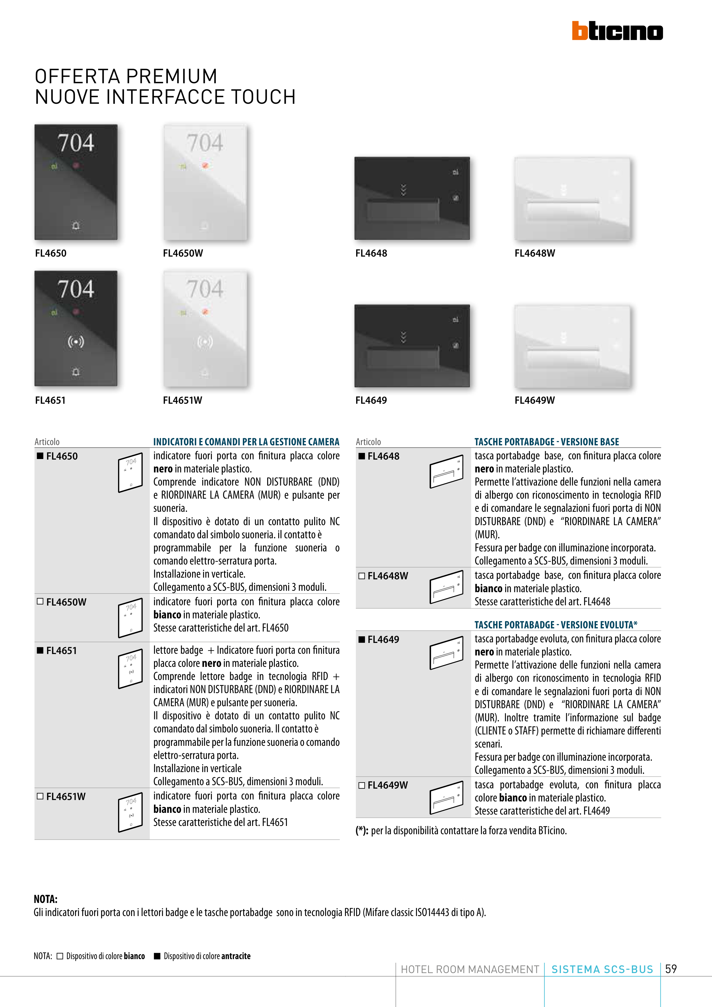 (*): per la disponibilità contattare la forza vendita BTicino.