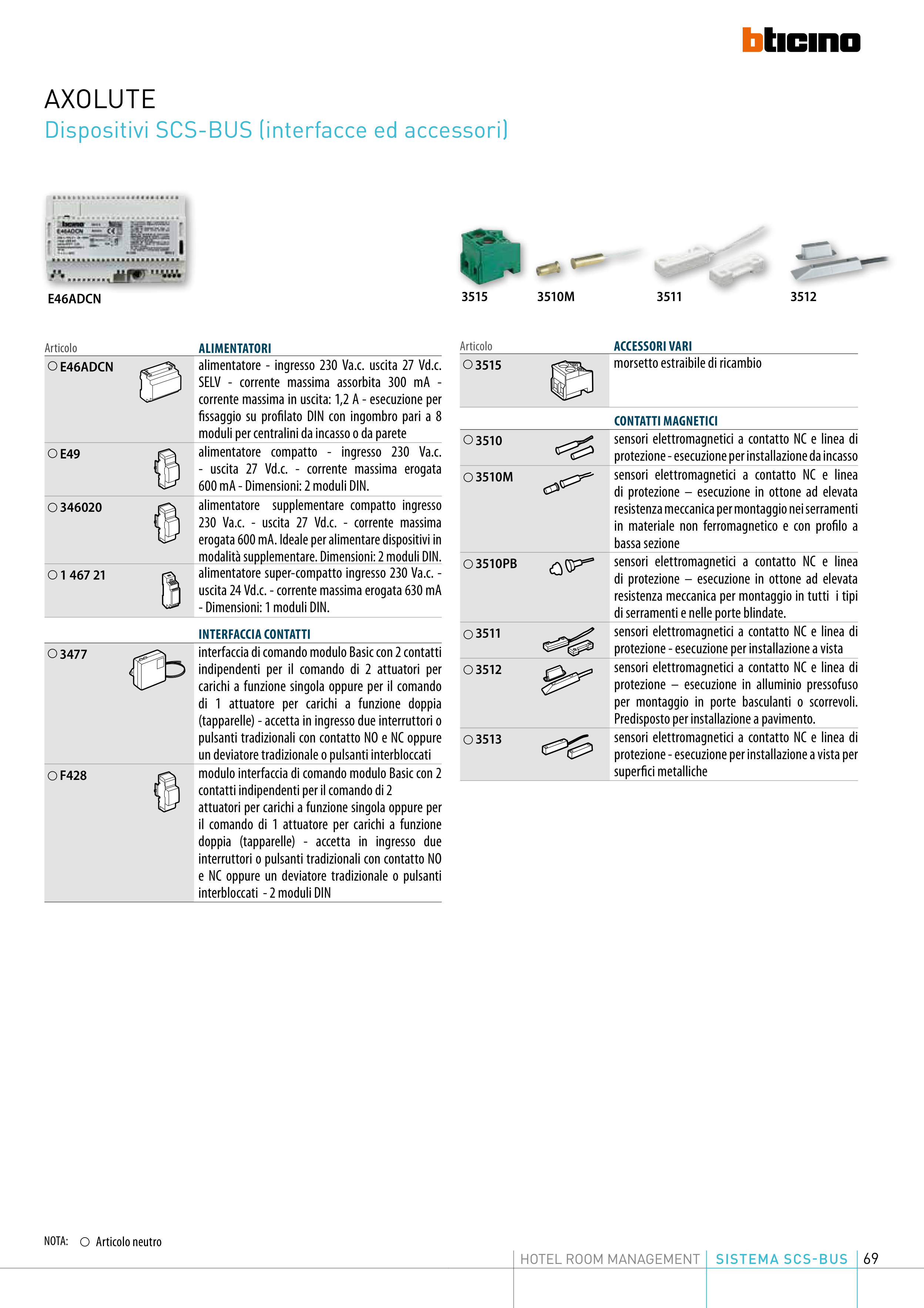 Catalogue BTicino: SCS Bus Technology for Hotel Room Management Collection 2018, page 69 of 172