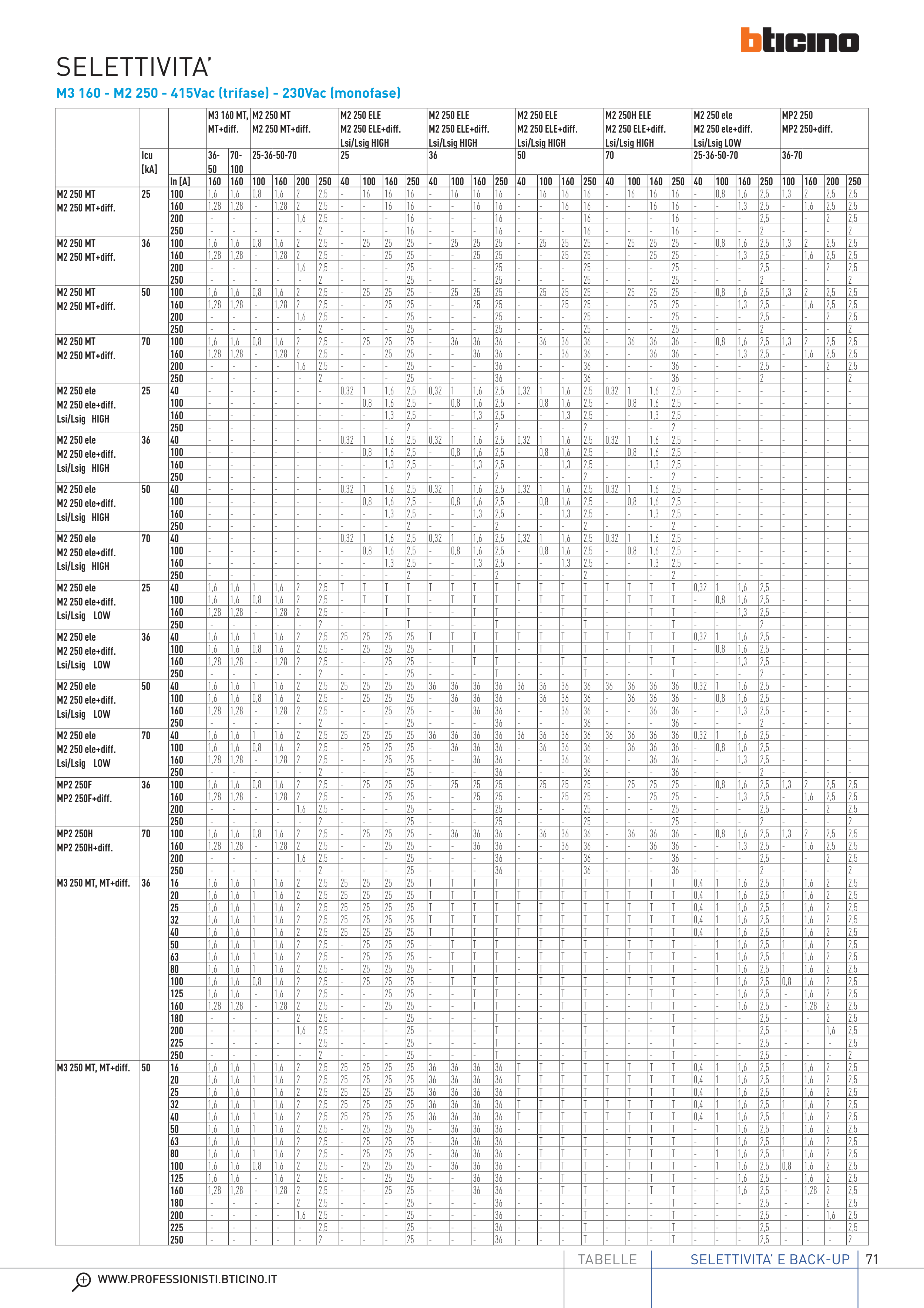 Catalogue BTicino: Selectivity & Back Up Tables 2022, page 71 of 91