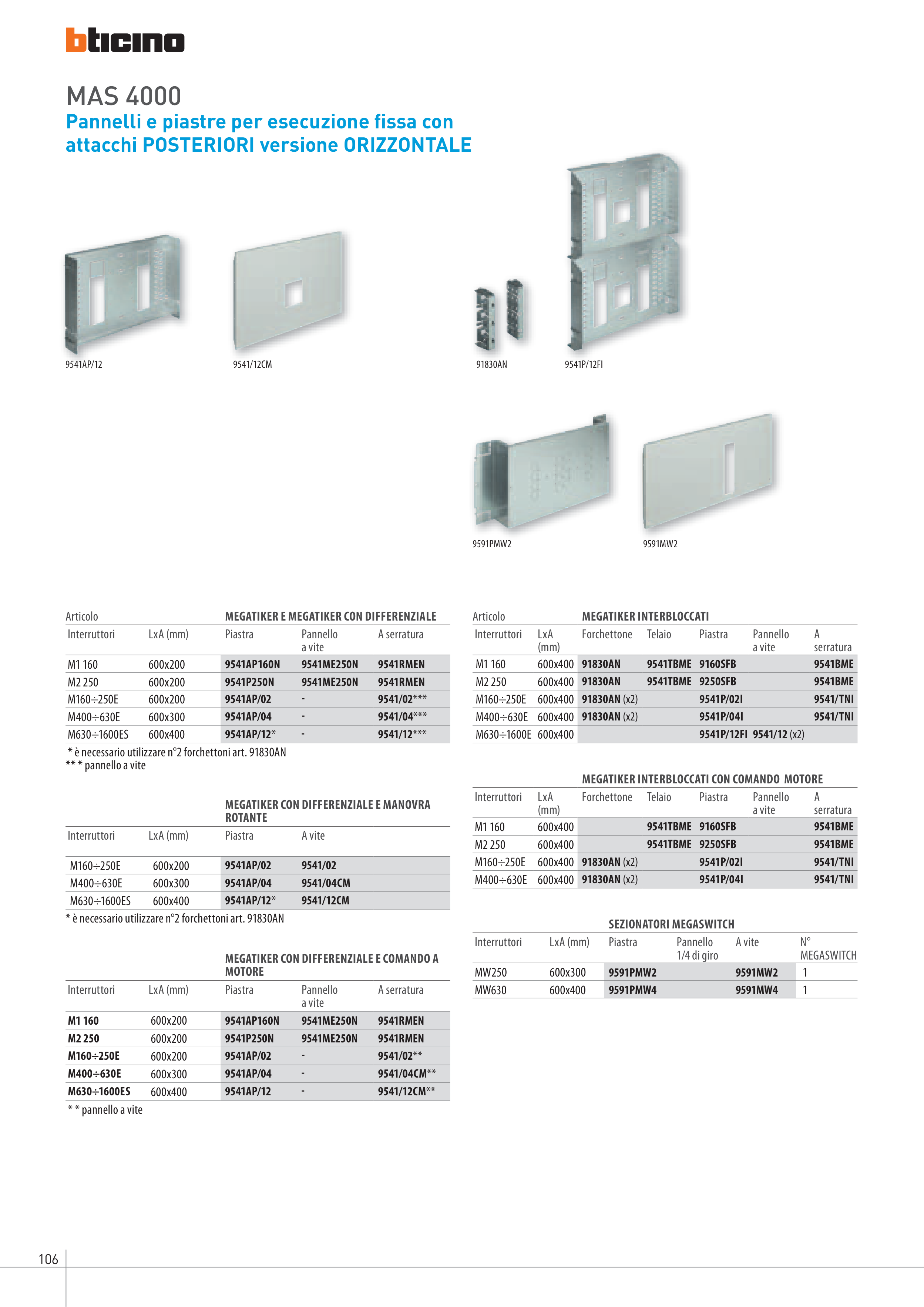 * è necessario utilizzare n°2 forchettoni art. 91830AN