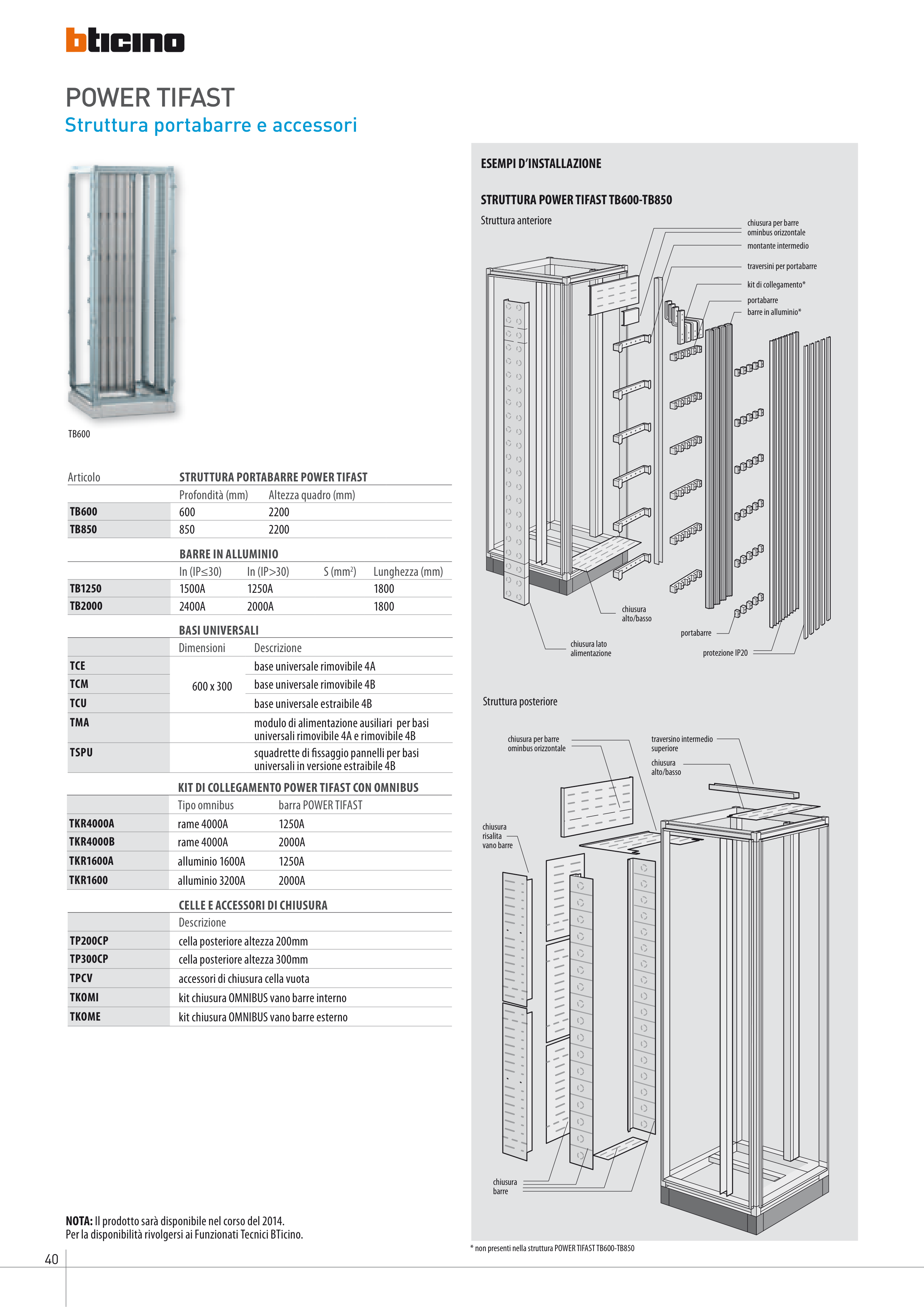 * non presenti nella struttura POWER TIFAST TB600-TB850