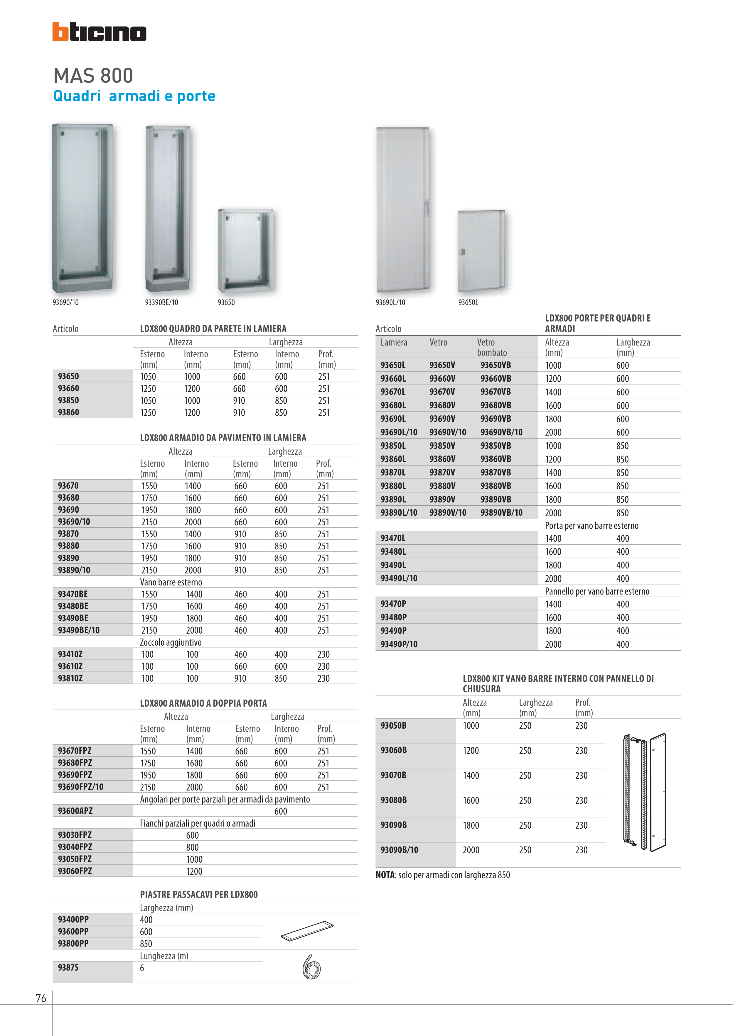 LDX800 KIT VANO BARRE INTERNO CON PANNELLO DI