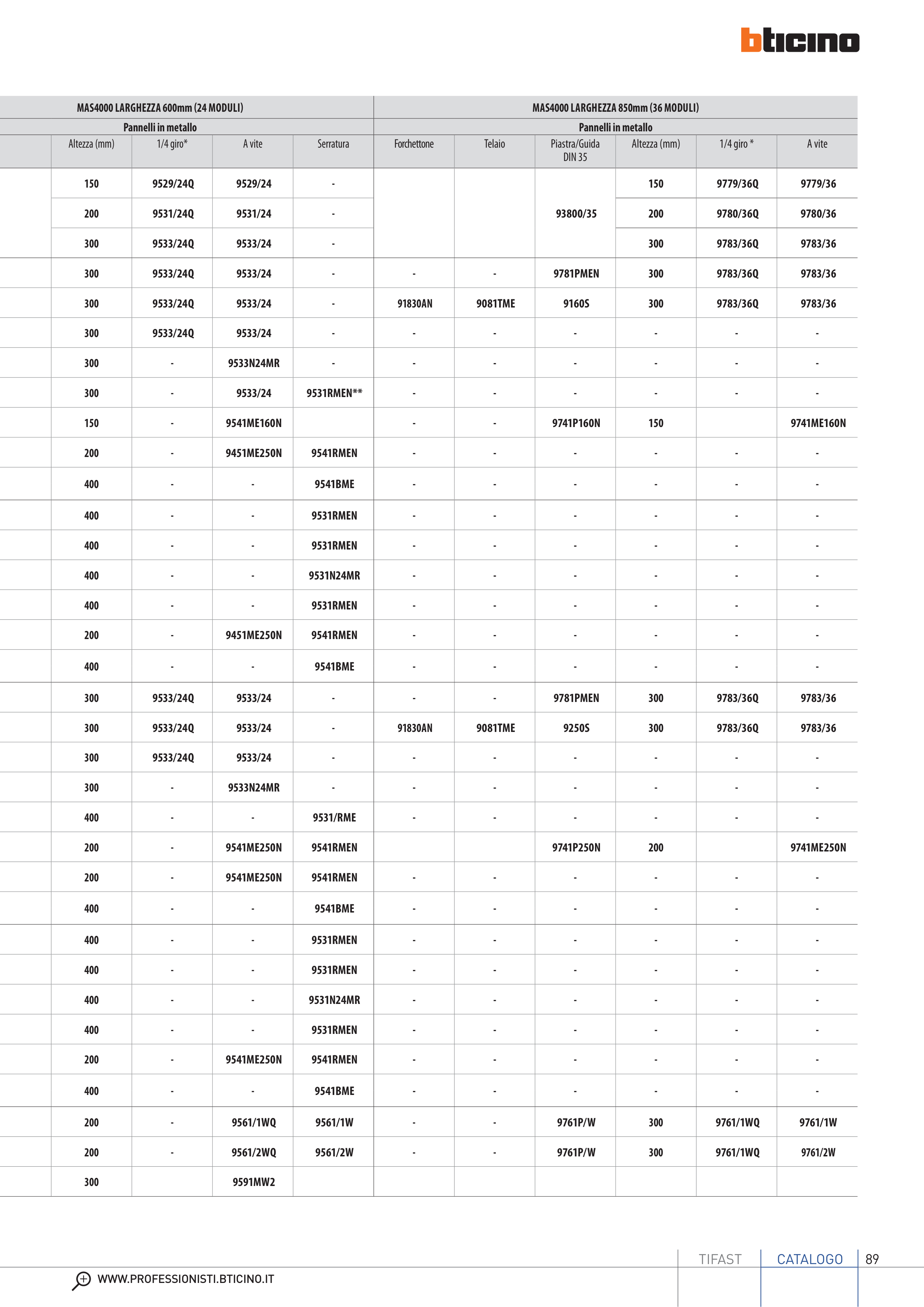 Catalogue BTicino: Tifast Wiring & Distribution Systems 2014, page 89 of 116
