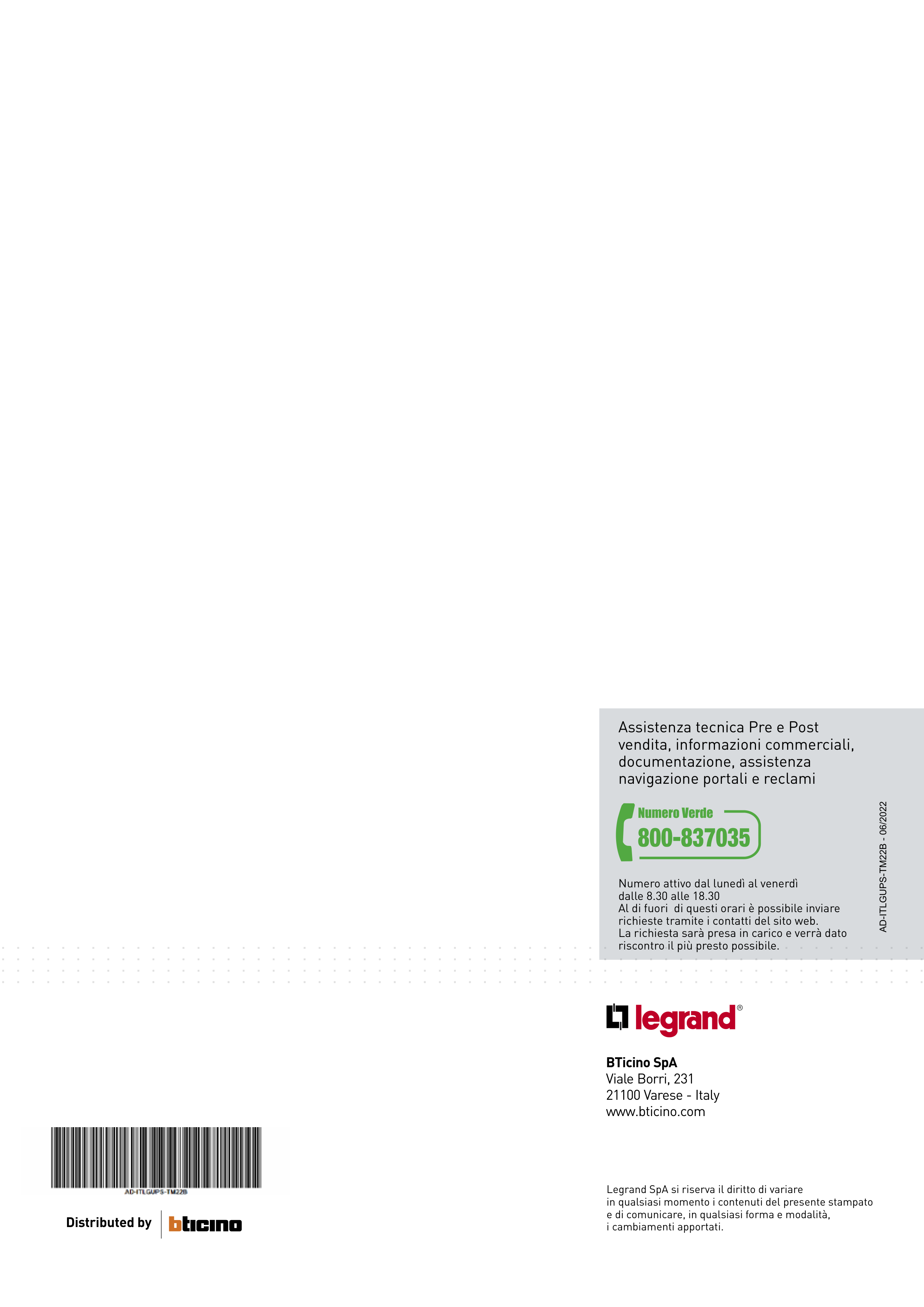 Legrand SpA si riserva il diritto di variare